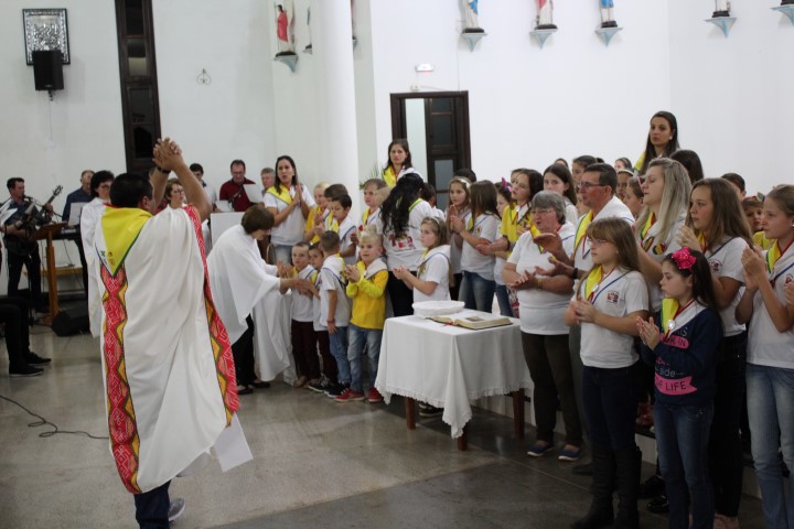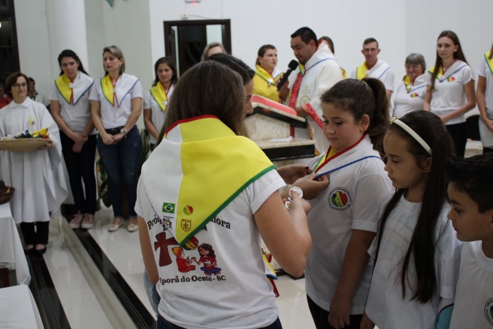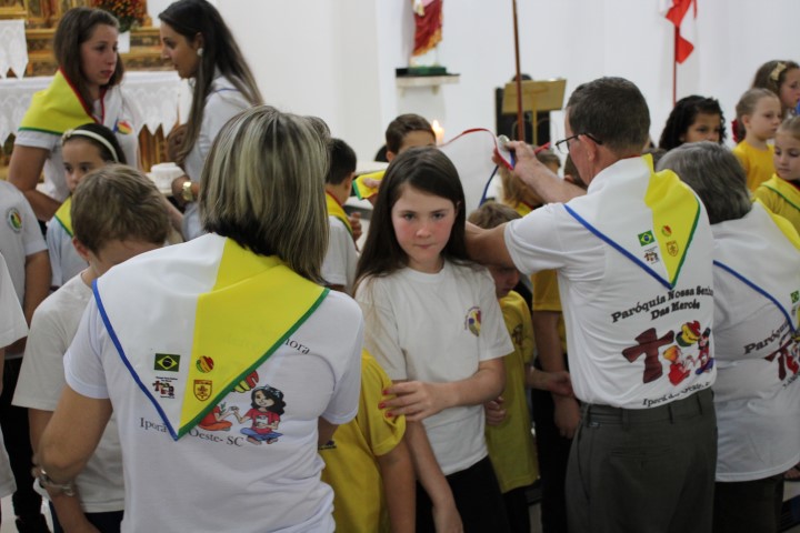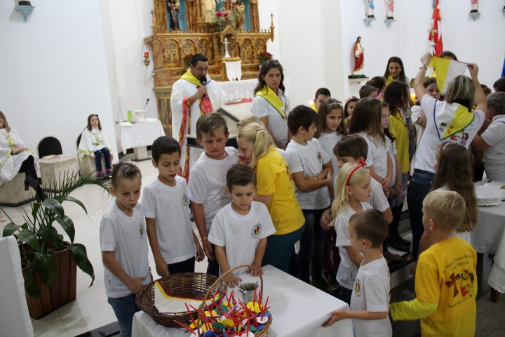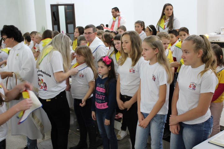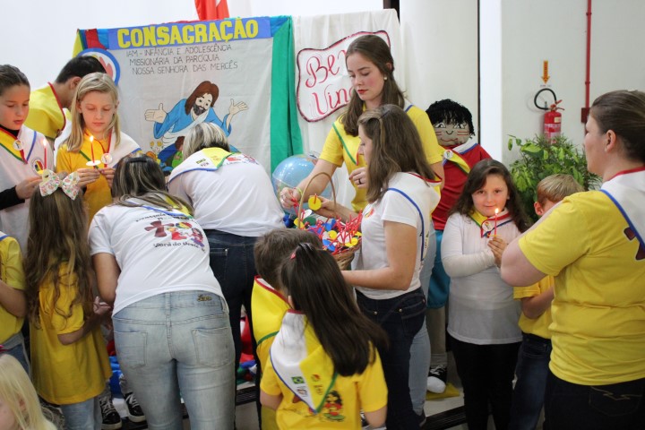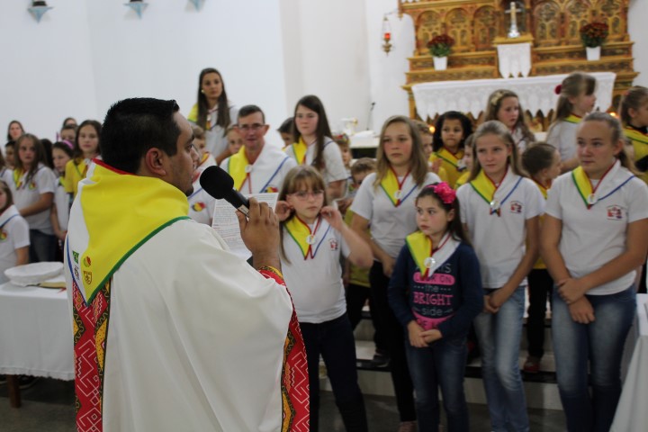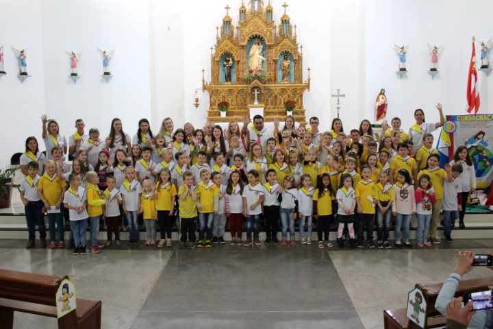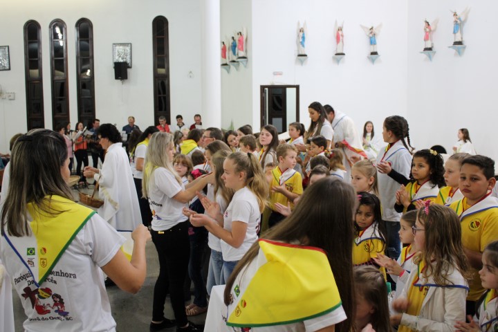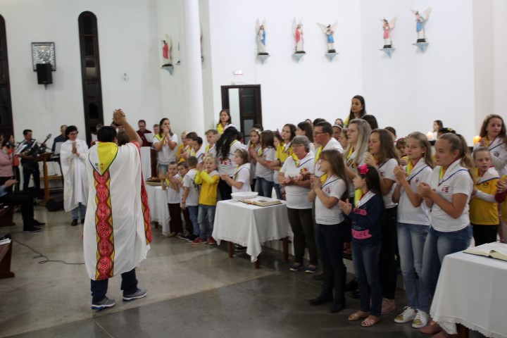 Aconteceu no dia 18 de maio na comunidade da matriz a Consagração das crianças da Infância Missionária da paróquia. A infância missionária iniciou a caminhada formativa na metade de 2014 e desde aquela época as crianças não tinha recebido uma celebração de consagração. Temos a infância missionária em oito comunidade da paróquia. Participou dessa celebração de consagração os pais, parentes das crianças e a comunidade da matriz.