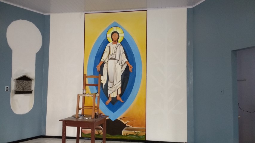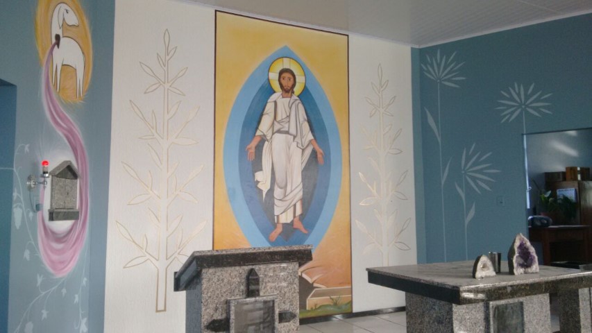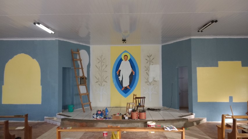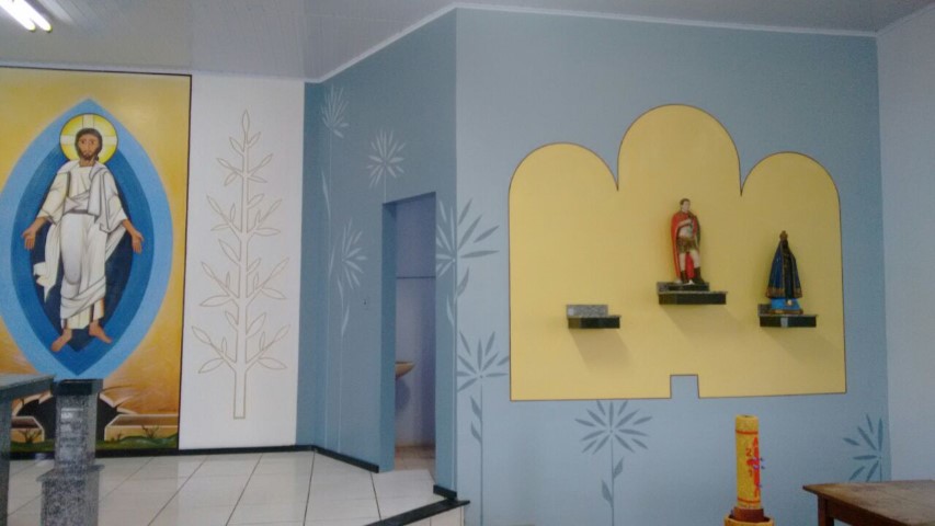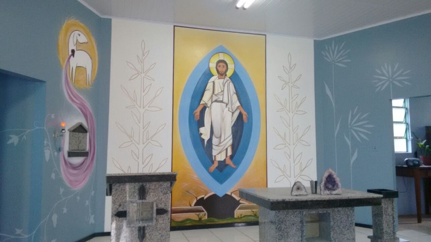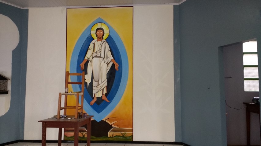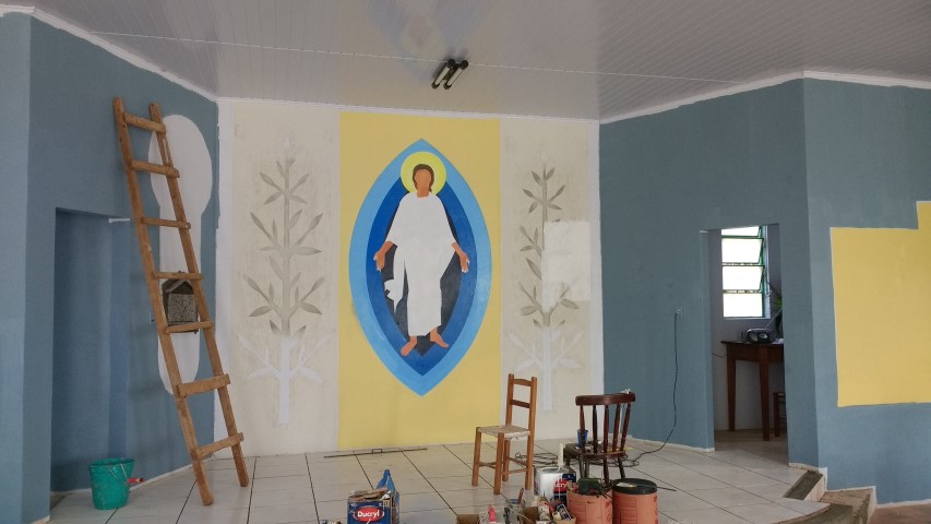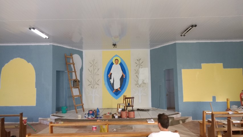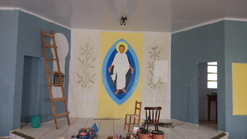 O Conselho da comunidade de Pirapó decidiu de reformar o presbitério e pintar o Cristo ressuscitado na parede. Foram apresentadas para a comunidade, em uma celebração cinco imagens de Cristo e dessas escolheram uma para ser pintada. Os trabalhos de reforma iniciaram no início de maio e a pintura da parede começou a ser pintada no dia 05 de maio. Logo abaixo estão as fotos da comunidade: