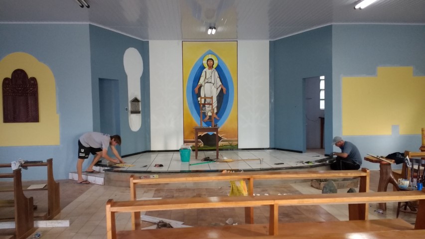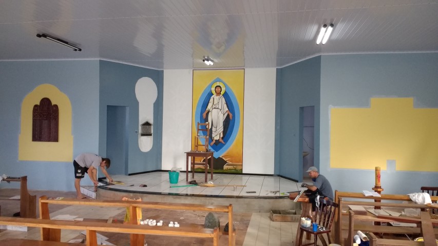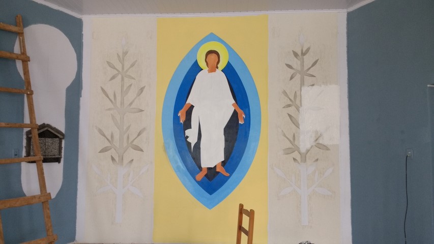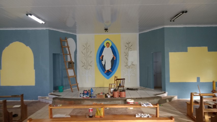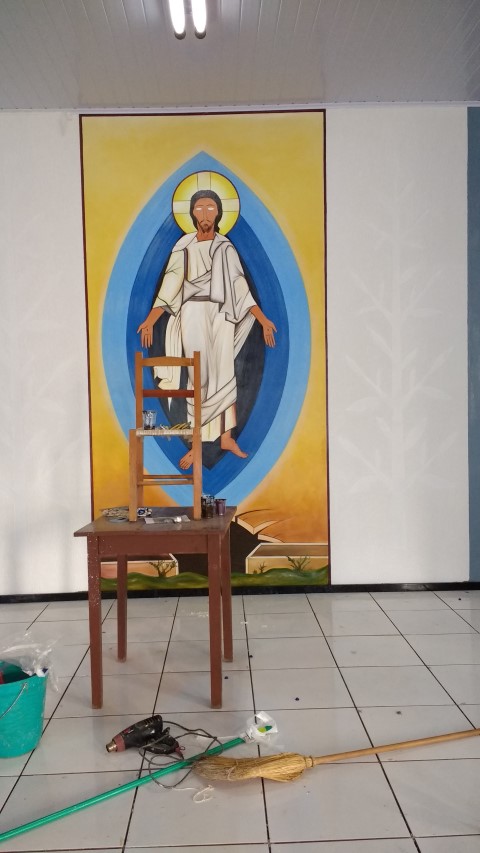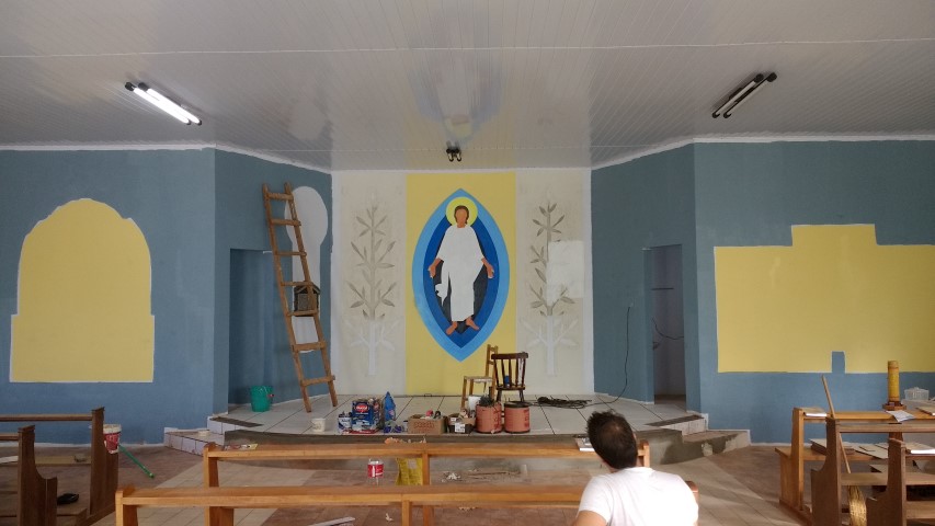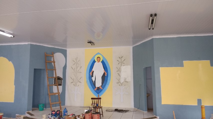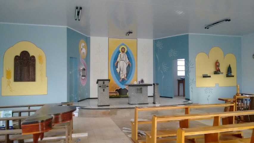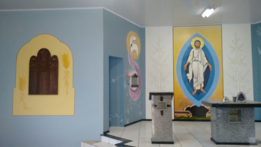 O Conselho da comunidade de Pirapó decidiu de reformar o presbitério e pintar o Cristo ressuscitado na parede. Foram apresentadas para a comunidade, em uma celebração cinco imagens de Cristo e dessas escolheram uma para ser pintada. Os trabalhos de reforma iniciaram no início de maio e a pintura da parede começou a ser pintada no dia 05 de maio. Logo abaixo estão as fotos da comunidade: