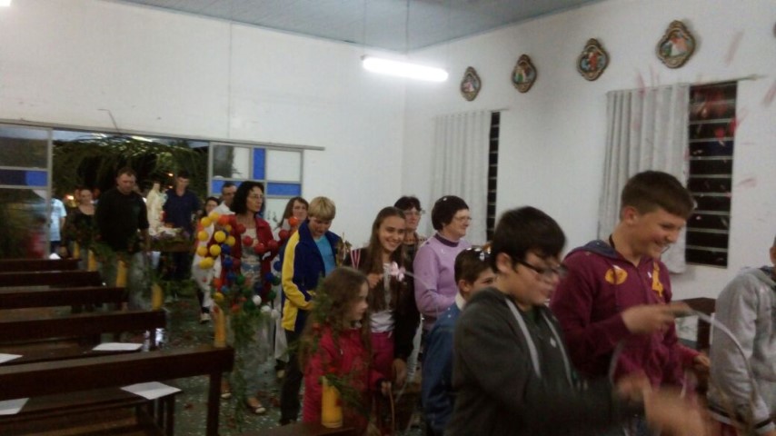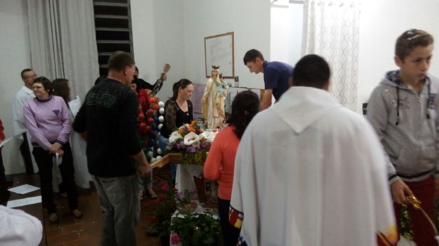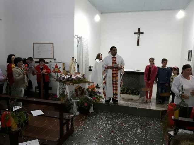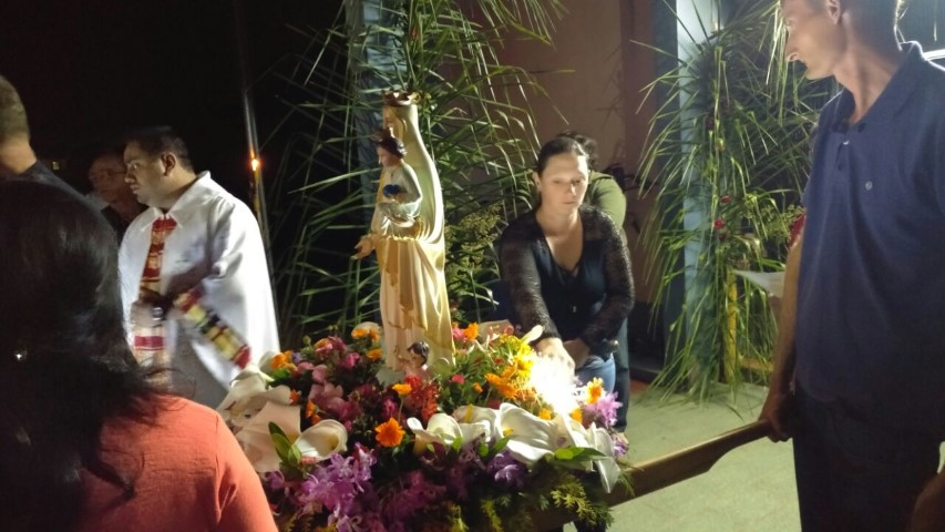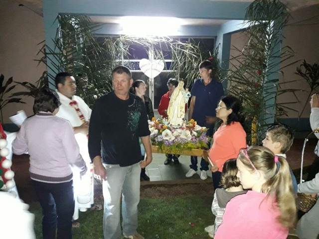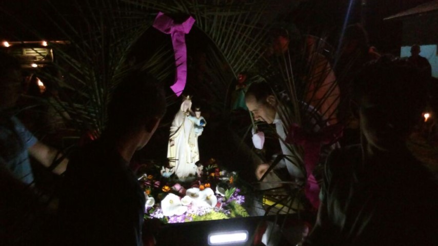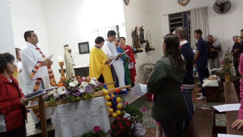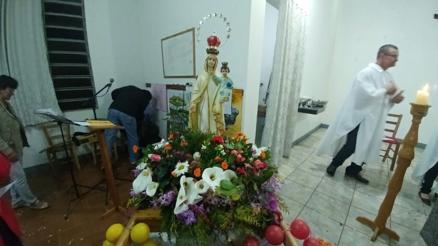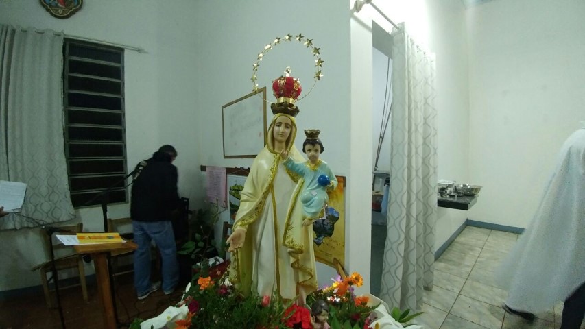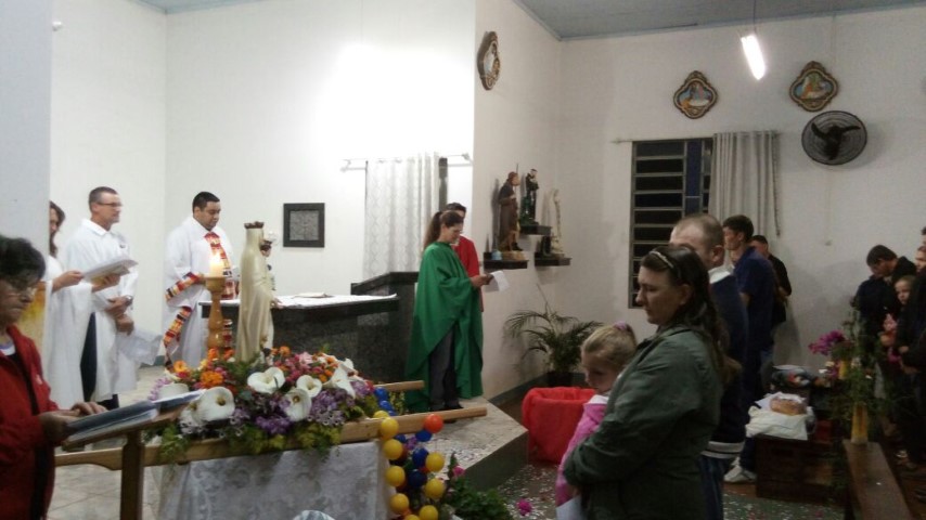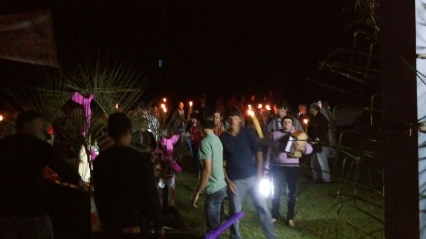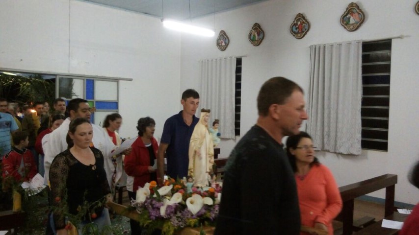 Ontem havia um tempo muito bom e uma noite espetacular. Dia 16 de agosto aconteceu a celebração de visitação de Nossa Senhora das Mercês na comunidade de Pirajú. As lideranças da comunidade de São Lourenço trouxeram a imagem das Mercês. A padroeira foi acolhida com muitas vivas e foguetes. Houve a caminha/peregrinação penitencial pela estrada iluminada com velas acesas dentro das taquaras. Na beira da estrada tinhas os alteres. Em frente e a igreja tinha faixa de acolhida. A igreja por dentro estava muito enfeitada. As crianças e adolescentes deixaram o chão da igreja cheio de papeis picados e pétalas das flores. Foram apresentadas duas crianças para serem batizadas. Várias comunidades estavam presentes: matriz, Barra Grande, São Lourenço, São Luiz, a igreja de confissão luterana e evangélica.