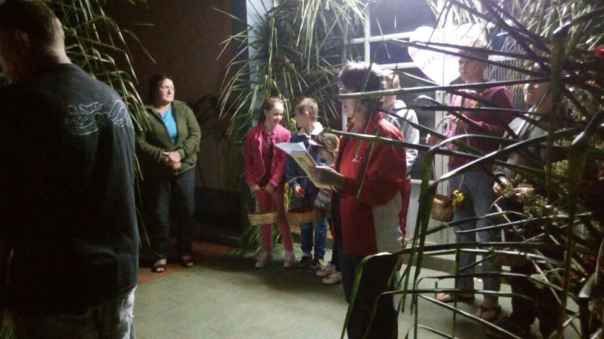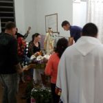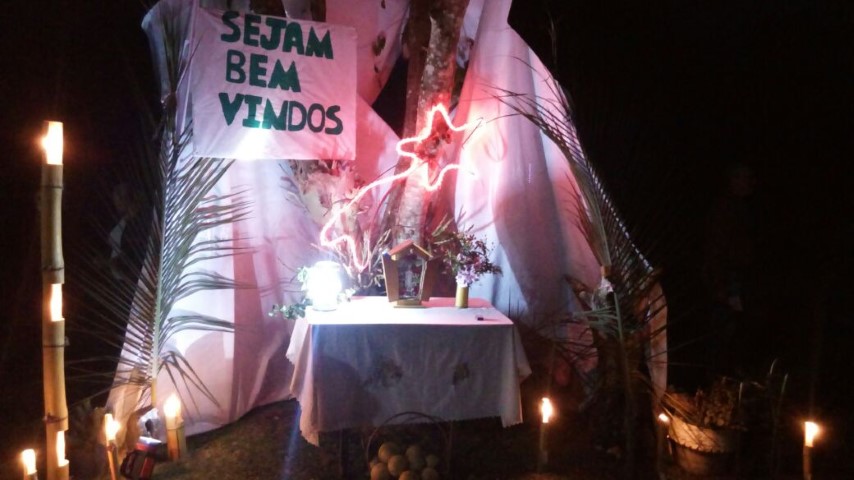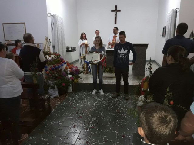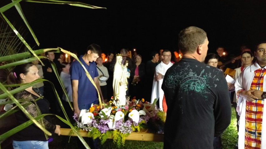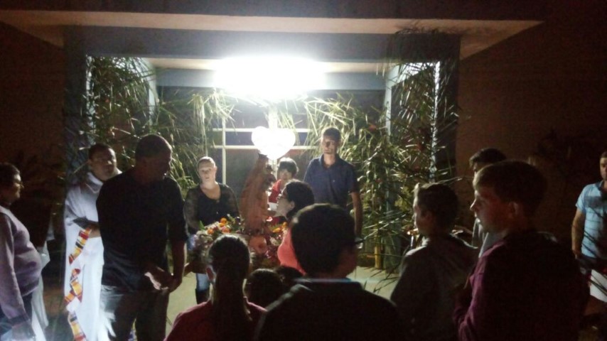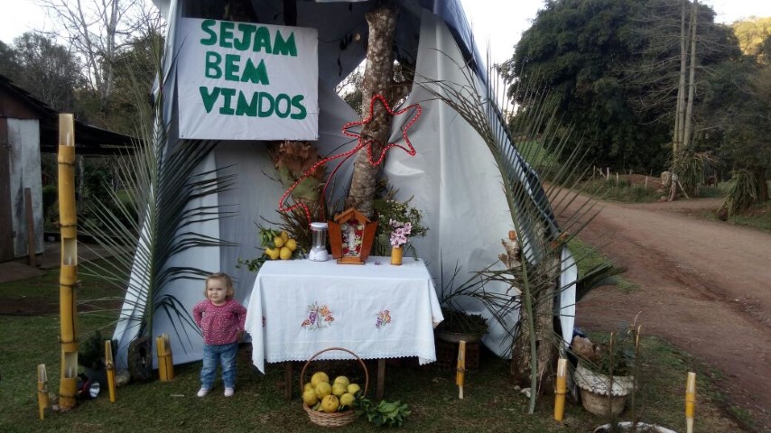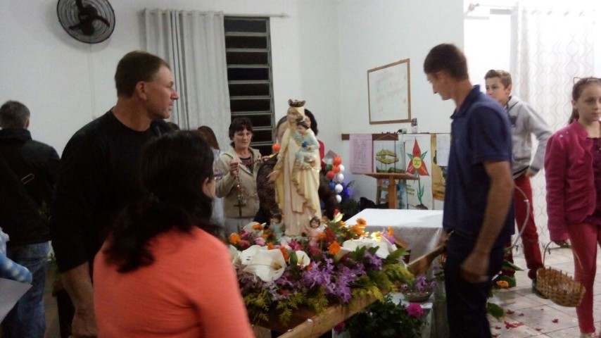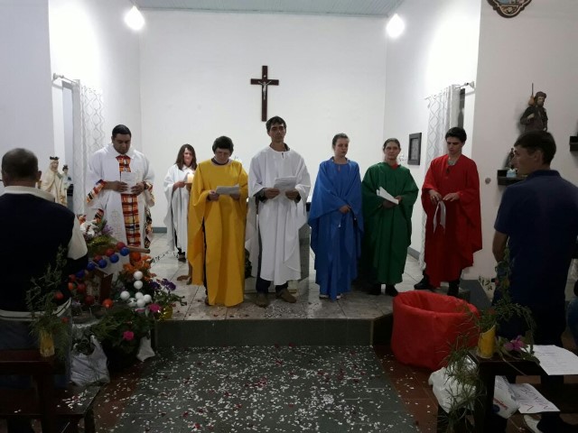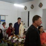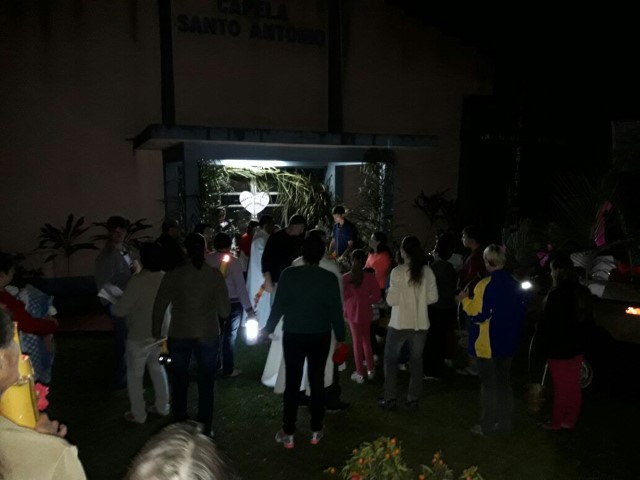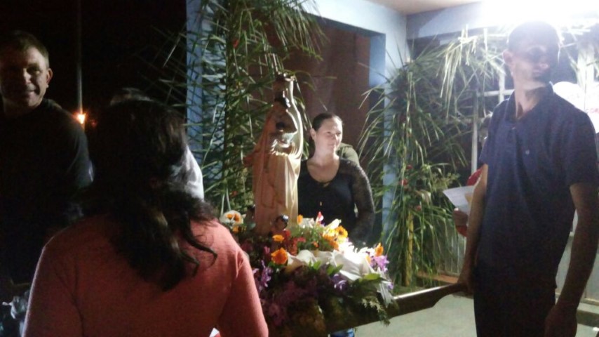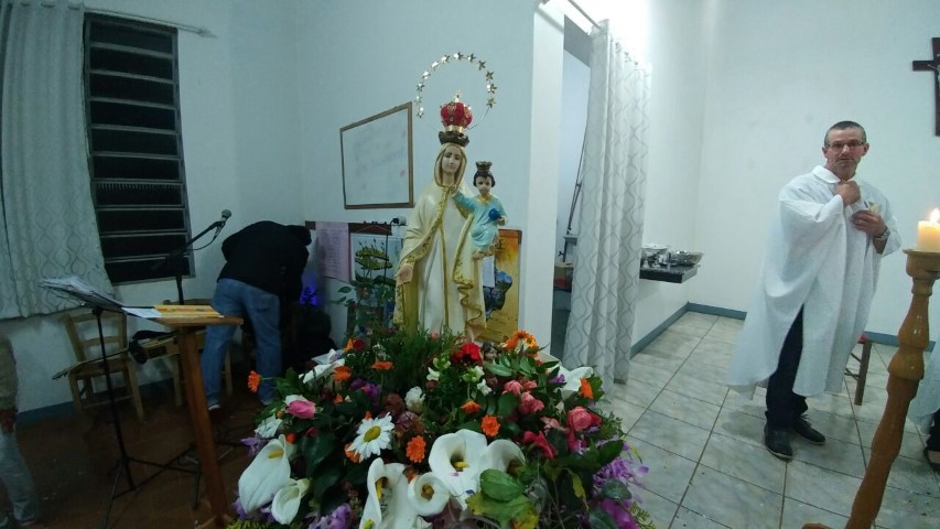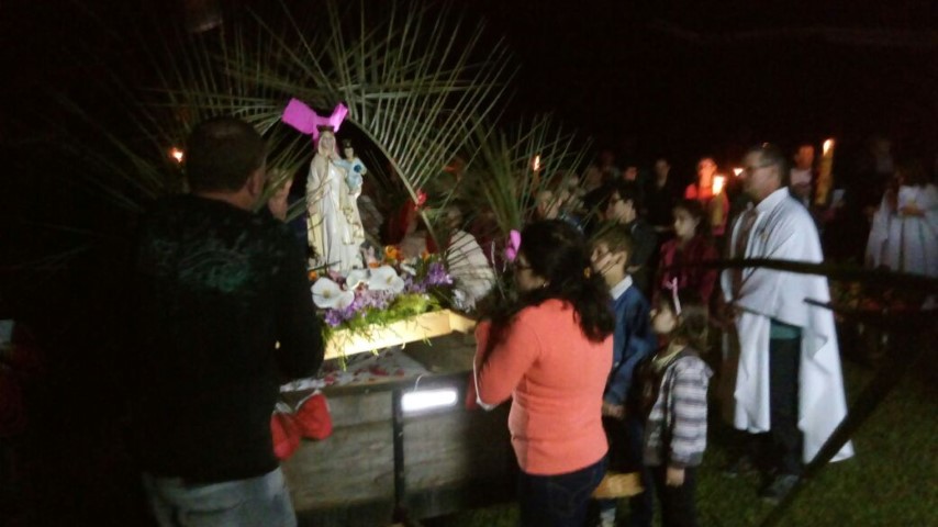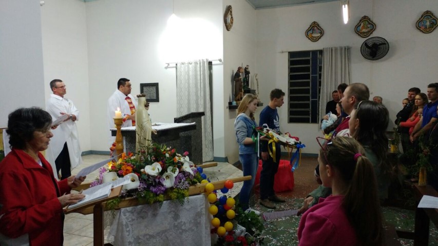 Ontem havia um tempo muito bom e uma noite espetacular. Dia 16 de agosto aconteceu a celebração de visitação de Nossa Senhora das Mercês na comunidade de Pirajú. As lideranças da comunidade de São Lourenço trouxeram a imagem das Mercês. A padroeira foi acolhida com muitas vivas e foguetes. Houve a caminha/peregrinação penitencial pela estrada iluminada com velas acesas dentro das taquaras. Na beira da estrada tinhas os alteres. Em frente e a igreja tinha faixa de acolhida. A igreja por dentro estava muito enfeitada. As crianças e adolescentes deixaram o chão da igreja cheio de papeis picados e pétalas das flores. Foram apresentadas duas crianças para serem batizadas. Várias comunidades estavam presentes: matriz, Barra Grande, São Lourenço, São Luiz, a igreja de confissão luterana e evangélica.