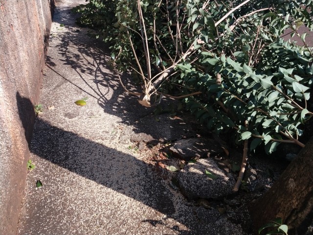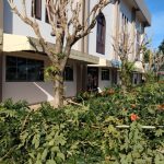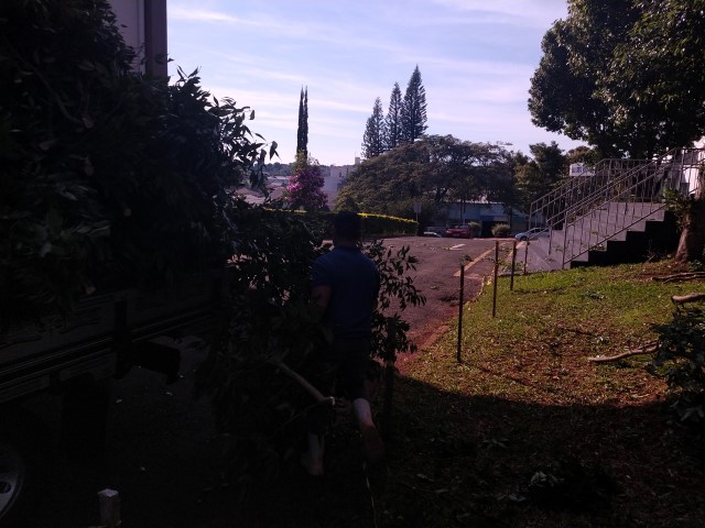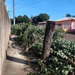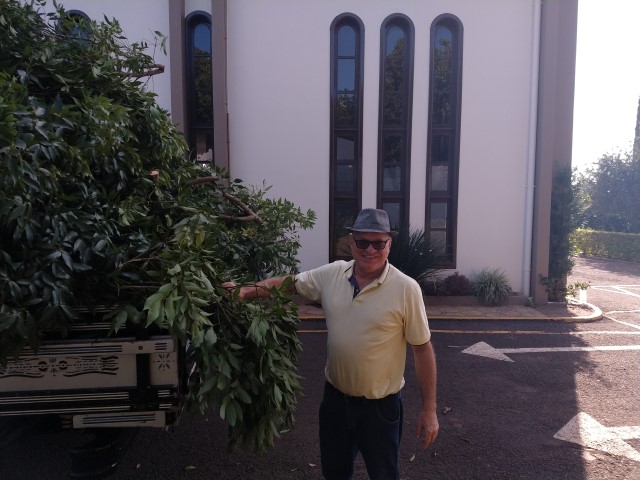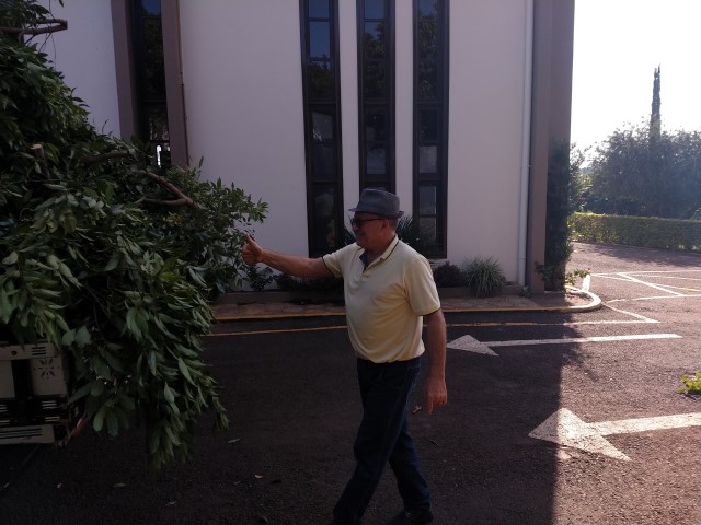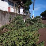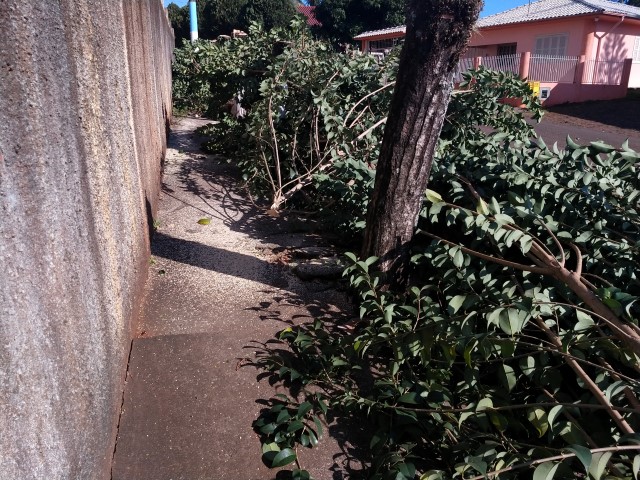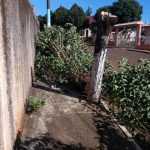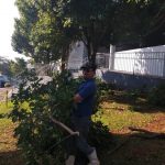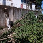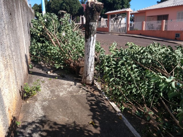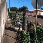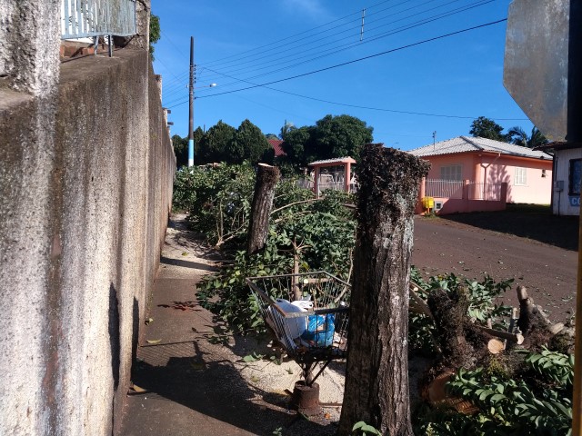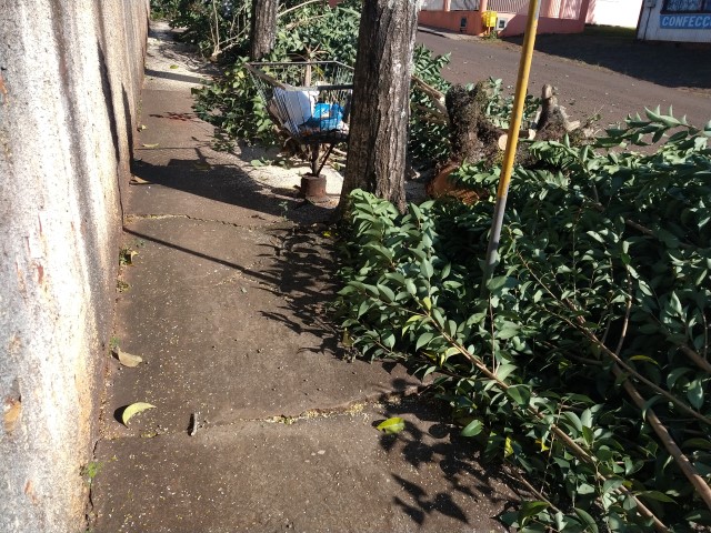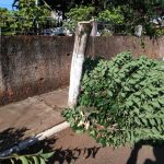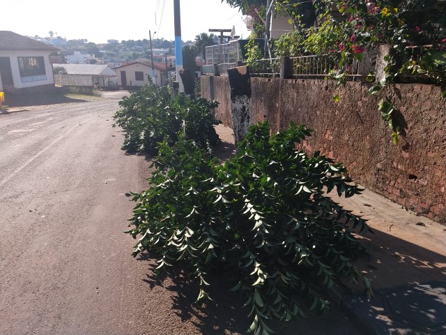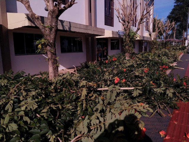Iniciou hoje, dia 11 de junho a retirada e o corte das árvores ao lado da casa paroquia. Primeiramente pelo fato das mesmas ocupar um bom espaço da calçada e ao mesmo tempo está danificando esse piso; também as mesmas estão muito velhas e ajudará no clareamento da casa paroquial – haja visto que as mesmas com a sombra estavam mofando as paredes da construção; outro fato é que possibilitará o tráfego das pessoas pela calçada, pois como estava era complicado as crianças, os idosos, as pessoas passarem por ali – a calçada rachada e levantada causava risco as pessoas. Desta maneira resolveu tirar as árvores e melhorar esse espaço; e também aproveitou podar as árvores em frente à secretaria paroquial e as próximas ao pavilhão católico.