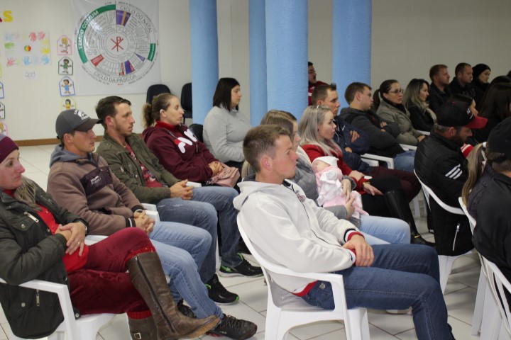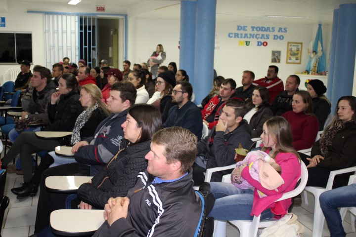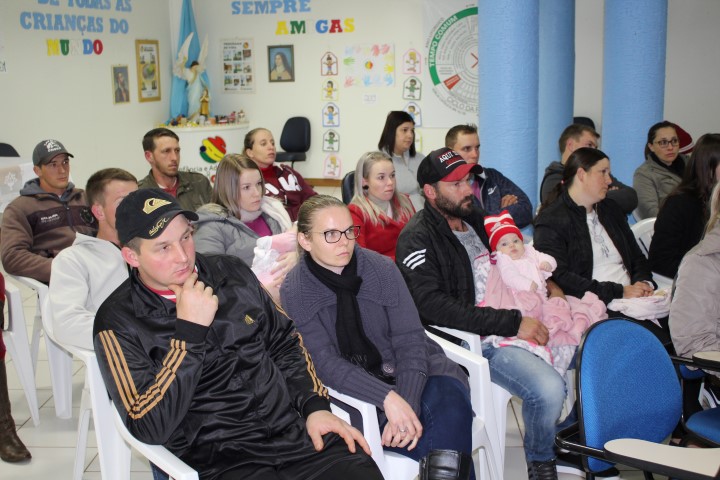 Segunda etapa de preparação de pais e padrinhos aconteceu no dia 04 de julho, com a presença de 93 pessoas participando. A Beatriz explicou com palavras claras o significado do Sacramento do Batismo, o compromisso que assumimos ao batizarmos nossos filhos/as. O Batismo é o Sacramento da Iniciação a Vida Cristã, que deve ser continuada no decorrer da vida, assumimos a missão de trabalhar pelo Reino de Deus.