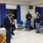 As preparações para Pais e Padrinhos voltaram a ser realizadas no auditório Paulo Apóstolo após um período de agravamento da pandemia que impossibilitava a reunião de pessoas.