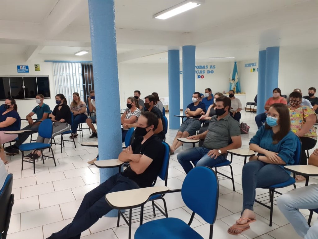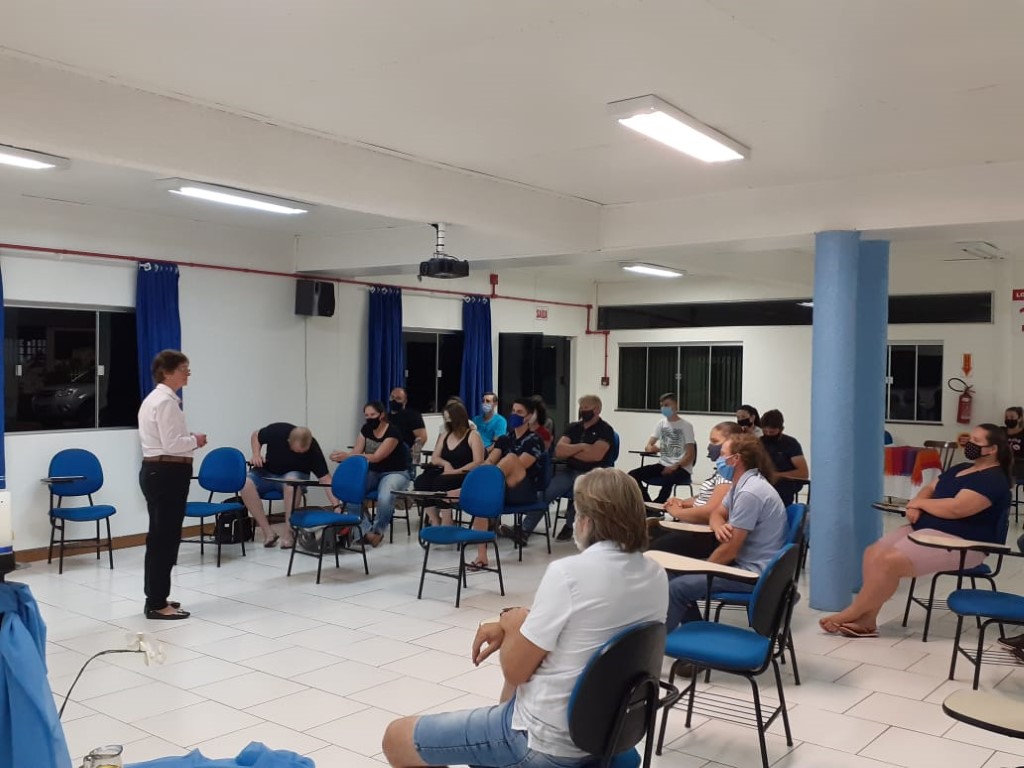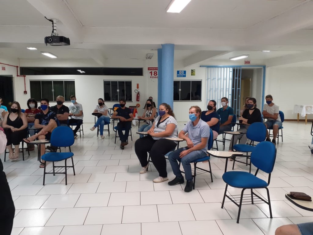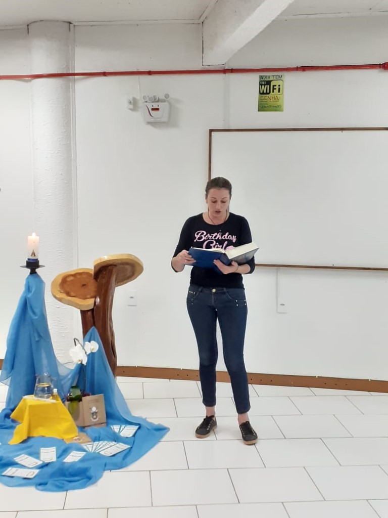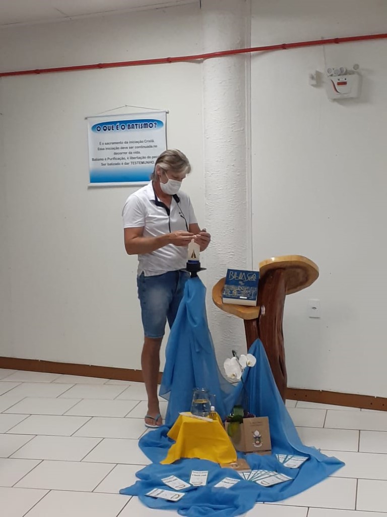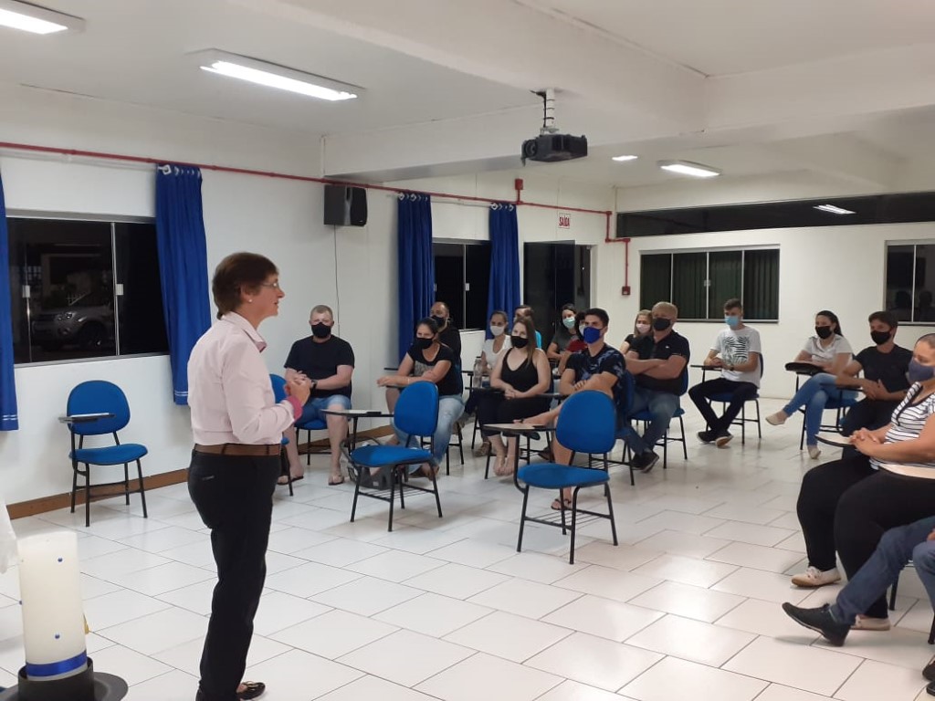 Continuando com as preparações para o Sacramento do Batismo, aconteceu no dia 19 de novembro a segunda etapa para pais e padrinhos com 48 participantes. A Beatriz conduziu a Preparação sobre o Batismo. Teve interação de alguns presentes que mostra que os participantes compreenderam o assunto. Estavam auxiliando a Fátima Colling e a Angela Tuni que são da Equipe da Pastoral do Batismo.