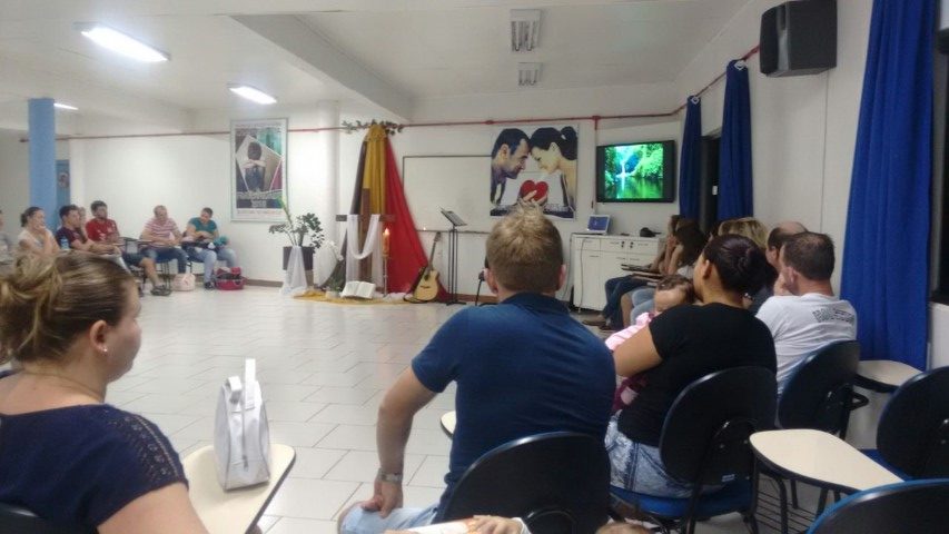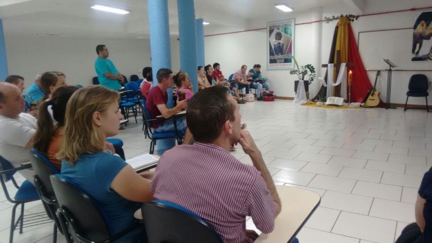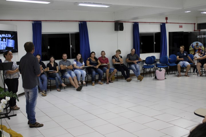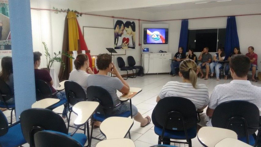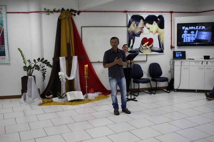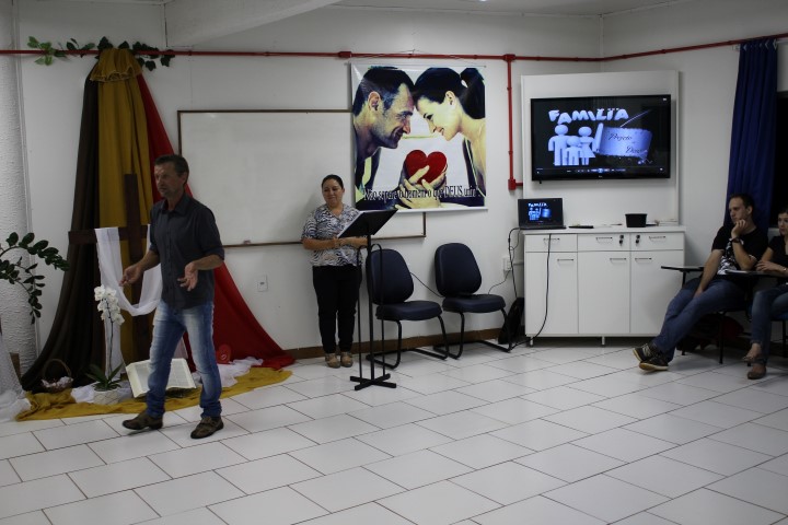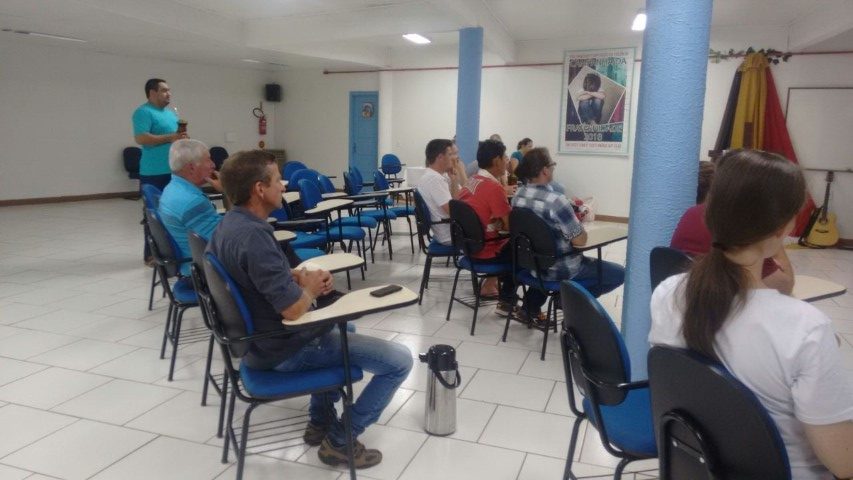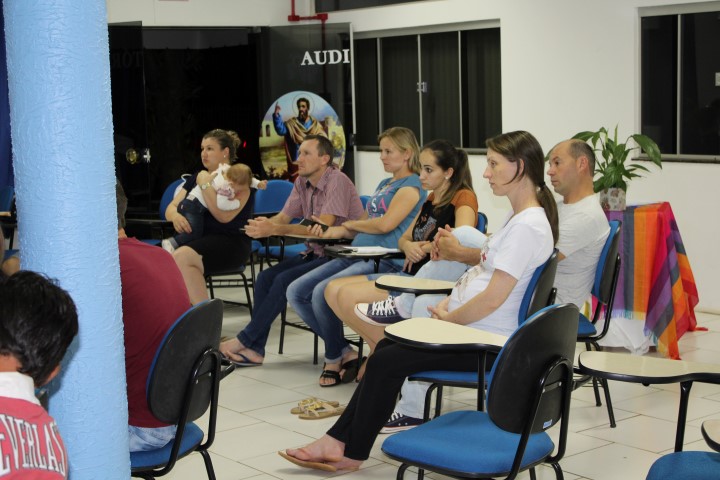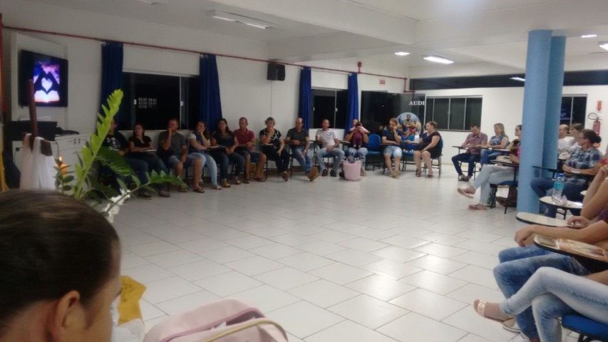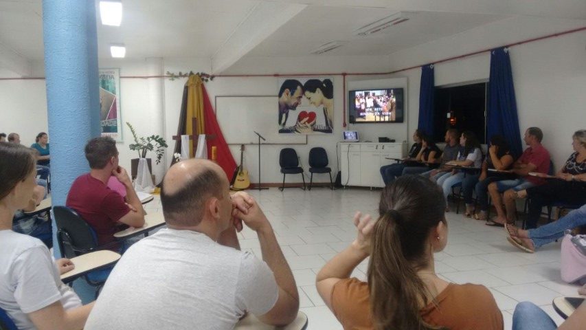 Realizou-se no dia treze de abril de 2018, a formação da segunda etapa do curso de noivos no Auditório Paulo apóstolo estiveram reunidos 16 casais, na primeira parte Pe. Osni explicou as normas e orientações da igreja, a importância de se focar no Sacramento do Matrimônio e não apenas preocupar-se com a ornamentação, as fotos e filmagens, a festa e convidados… mas sim se focar na importância do sacramento. Na segunda parte Vitor e Marlei Giehl falaram sobre o tema família projeto de Deus, e a importância de Deus na formação de novas famílias, e partilharam as experiências vividas em família e em comunidade ao longo de 25 anos de casados.