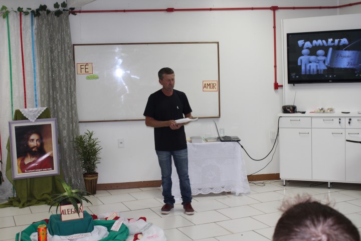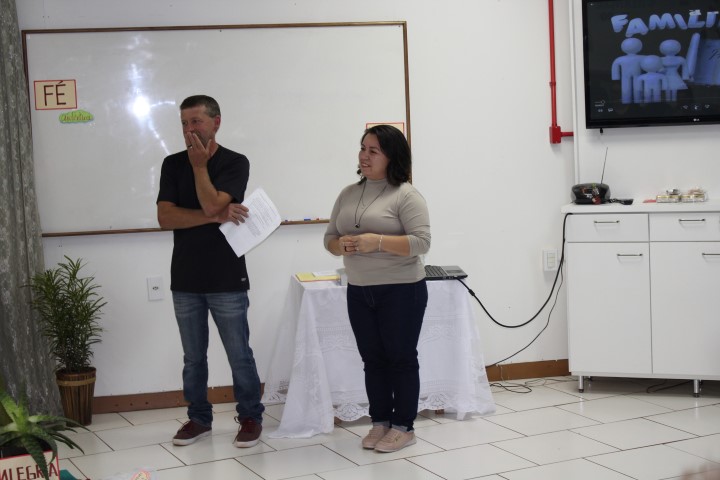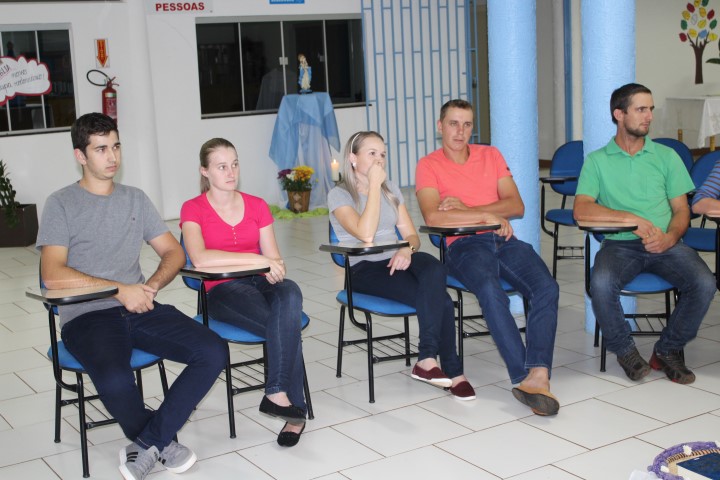 Aconteceu no dia 26 de abril a preparação dos noivos no auditório paroquial. No primeiro momento o casal Vitor e Marlei falaram sobre a experiência de ter uma família. Em seguida o padre Osni de Souza falou sobre as orientações da igreja e a importância do Sacramento do Matrimônio na vida casal.