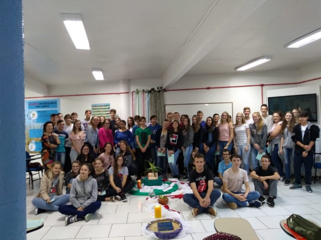 Aconteceu no dia 27 de abril no auditório paroquial o retiro para os crismandos em preparação para o Sacramento da Crisma. A assessora do retiro foi Atácia que esteve preparando os jovens para a celebração da Crisma.