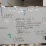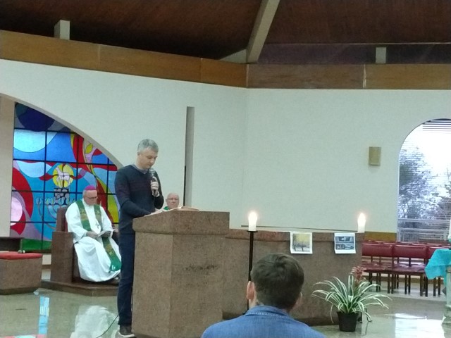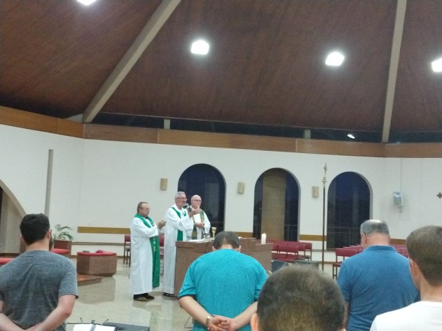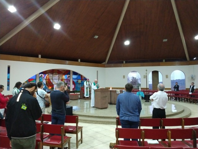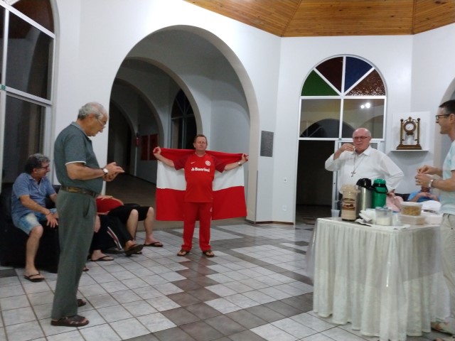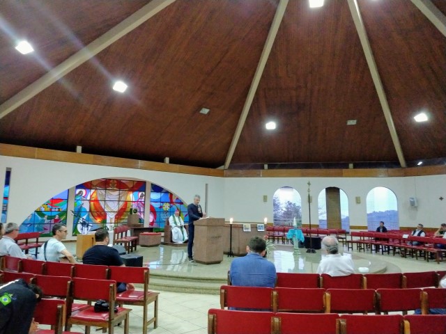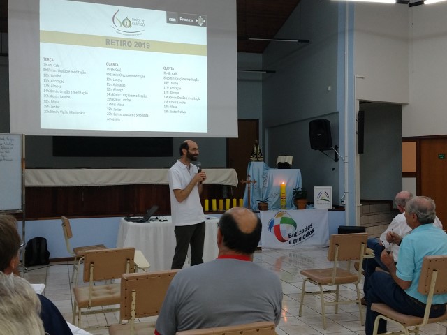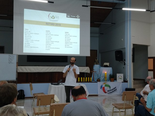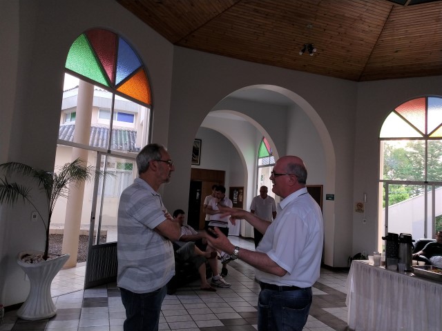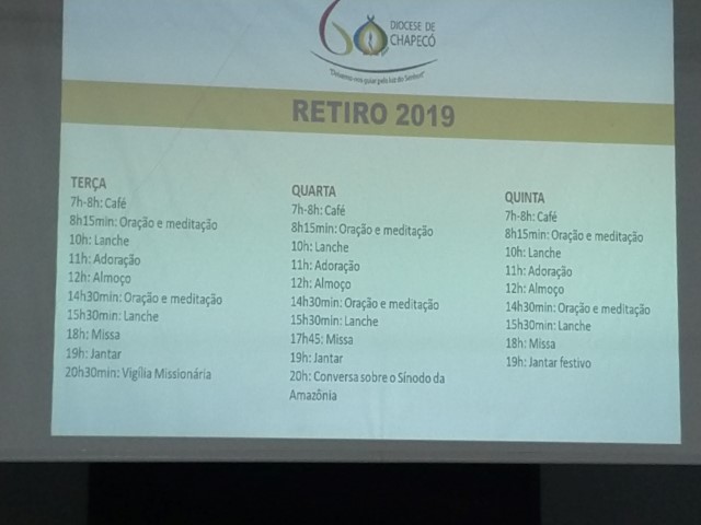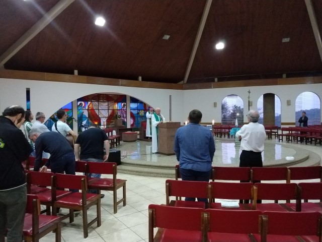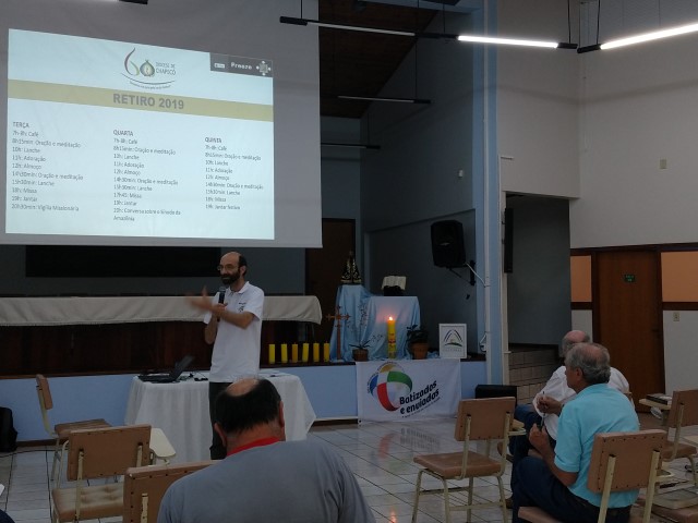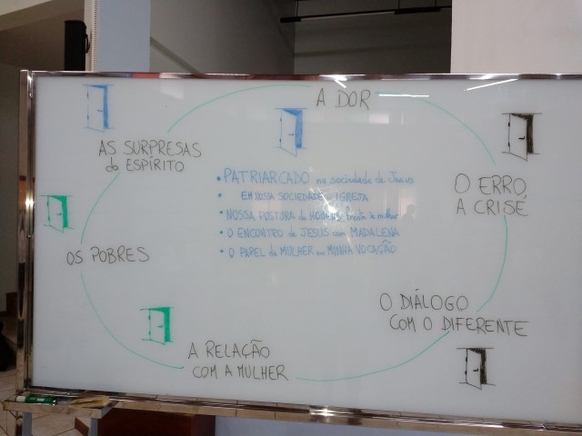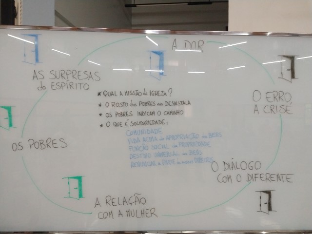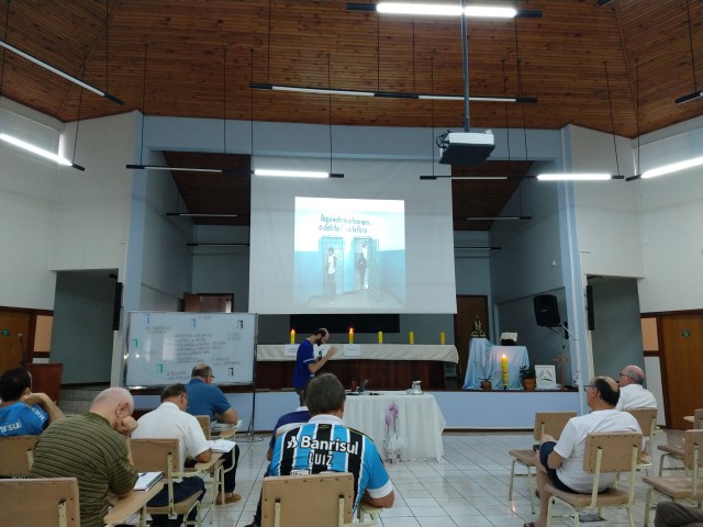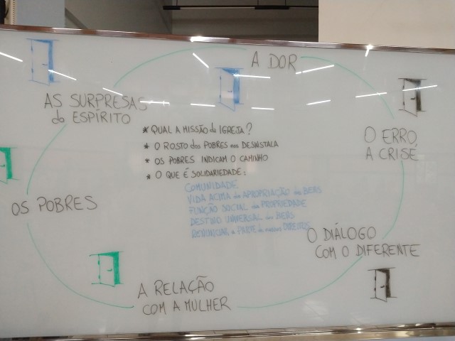 Aconteceu do dia 16 a 20 de setembro o retiro dos padres diocesanos de Chapecó na Casa de Formação – Divino Mestre da diocese de Francisco Beltrão/Palmas. O assessor foi o padre Dário Bossi – Missionário Comboniano do coração de Jesus – MCCJ. O assessor trabalhou o retiro a partir de seis portas que foram: As surpresas do Espírito, A dor, O erro, A crise, O diálogo com o diferente, A relação com a mulher e Os pobres. Em cada etapa foi acesso uma vela e o assessor fez o desenho da porta e um círculo entre eles. Segundo o assessor: “estes temas representam as fronteiras de nossa vida. As fronteiras são os lugares do imprevisto, da descoberta, do inédito, do encontro com o diferente… E, portanto, do encontro com deus. Assim, o círculo que percorre cada um dos temas é a oração: busca do rosto de deus nos momentos mais fortes, importantes ou delicados de nossa vida. Para uma igreja em saída, pessoas em saída. Sem medo de olhar para seus limites, que são as fronteiras de nosso espírito. Queremos nos escutar, escutar a vida nas fronteiras. Como peregrinos”.