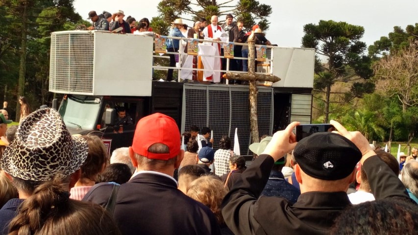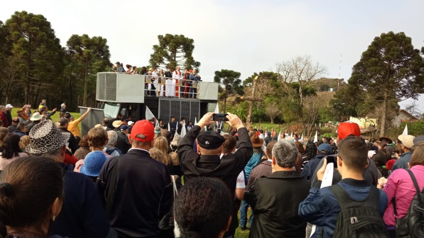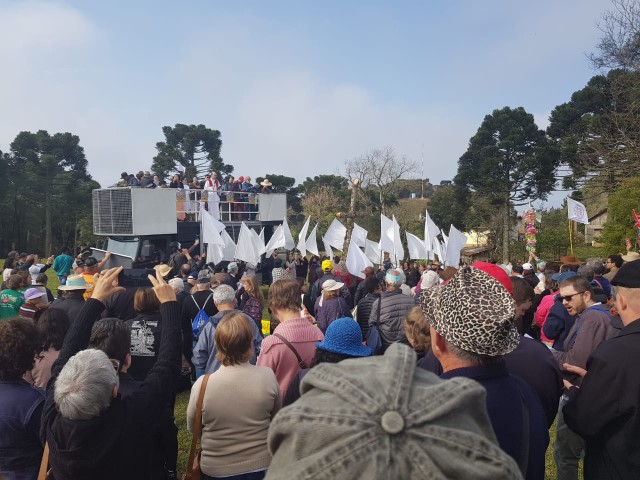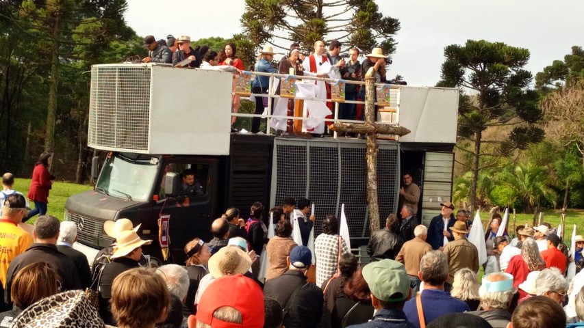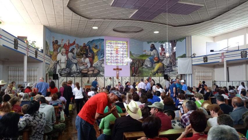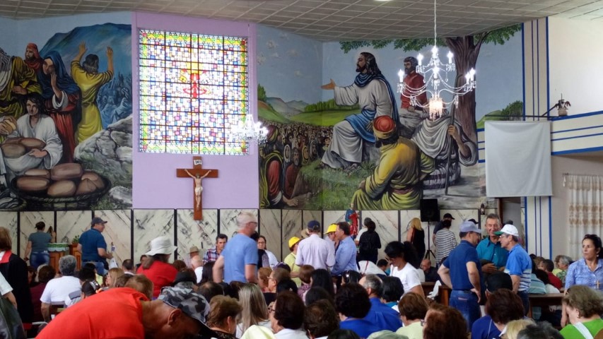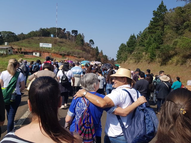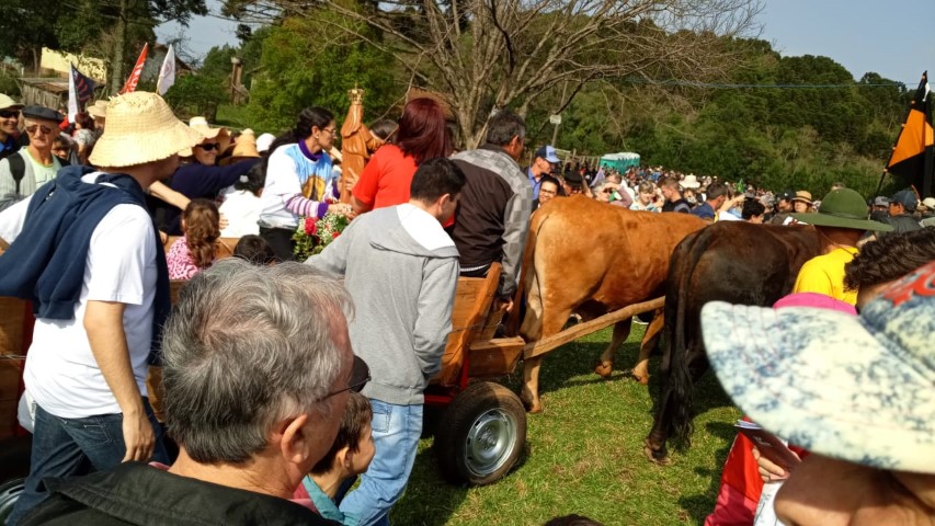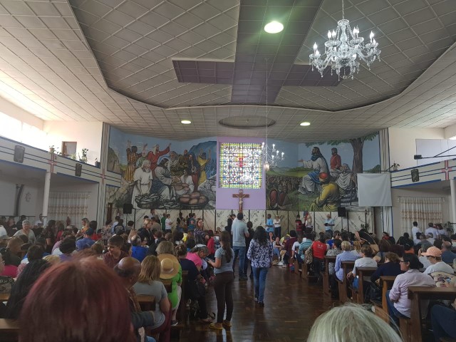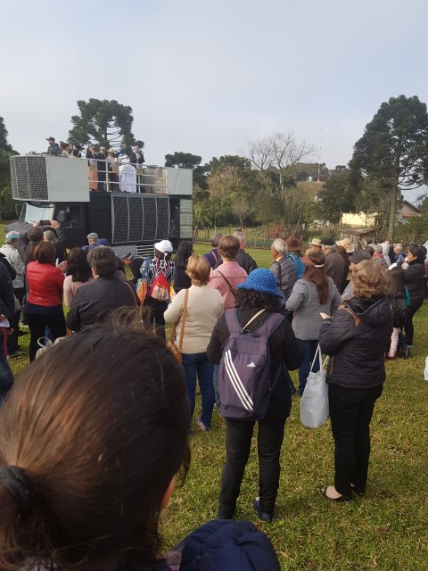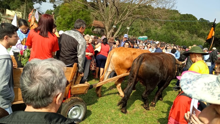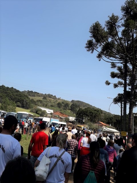 No dia 15 de setembro, oito lideranças da paróquia participaram da vigésima quinta ROMARIA DA TERRA E DAS ÁGUAS em São José do Cerrito Diocese de Lages, foi muito aproveitado esse momento onde as pastorais movimentos e organizações com coragem devem ser os cuidadores deste jardim de NOSSA CASA preservando as sementes crioulas, as águas sagradas e a terra nossa mãe. Momento de oração de graças, às 8 horas chegamos e às 9 horas começou a caminhada. Três quilômetros até a igreja. Na caminhada teve a imagem da padroeira Nossa Senhora dos Prazeres sendo levada com a carroça a bois e com a cruz feito de árvore. Às 14 horas teve a celebração eucarística e logo após o encerramento. E no final foi definido a próxima ROMARIA DA TERRA E DAS ÁGUAS que será no ano de 2021 na diocese de Florianópolis. Teve em torno de 10 mil pessoas que fazem parte das 10 dioceses de Santa Catarina.