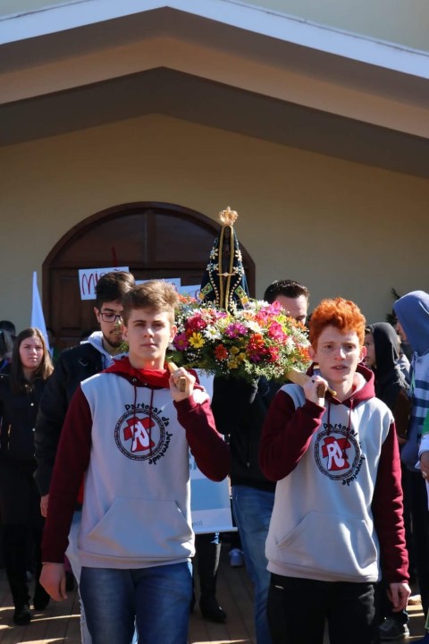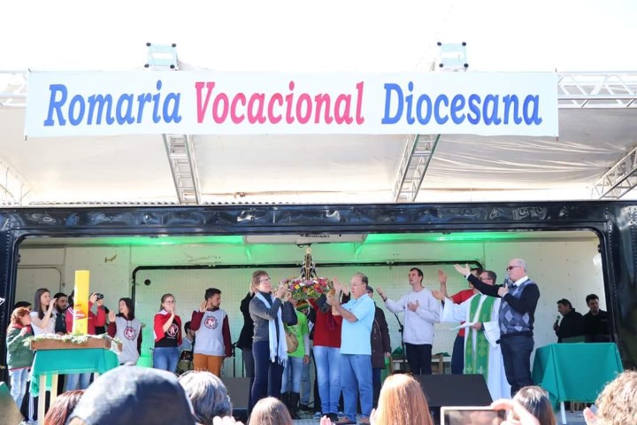 Aconteceu no dia 26 de agosto em Cunha Porã a Romaria Vocacional Diocesana. Da paróquia de Iporã enviamos um micro-ônibus para participarem da romaria. Gilnei Schoen comenta sobre o encontro: diz ele “Padre, essa foi minha primeira vez que eu participei da romaria vocacional e espero que tenha mais oportunidades para participar… gostei muito desse momento no qual rezamos pelas vocações e pedimos para que o Senhor envie mais operários, pois a messe é grande e os operários são poucos. Além disso na parte tivemos a oportunidade de conhecer novas pessoas, participar das oficinas e conhecer um pouco mais a fundo sobre cada tipo de congregação que estava expondo seu trabalho no dia da romaria, visto que ano que vem estarei entrando para o seminário diocesano de Chapecó. Para mim foi um dia muito especial e importante… por meio desse quero agradecer também a paróquia de Iporã por ter conseguido arranjar um espaço para mim no micro, saibas que eu sou muito grato por isso”.