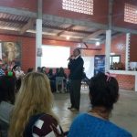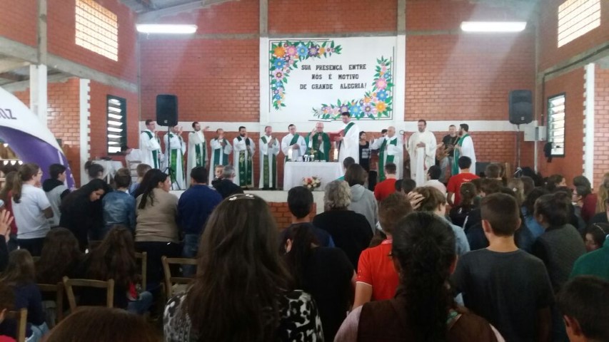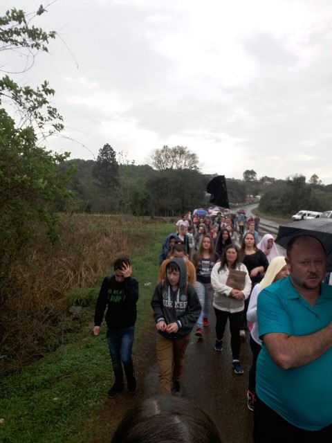 Começou a celebração com a caminhada na praça da cidade de Cunha Porã, seguindo até a gruta Nossa Senhora da Lurdes. Durante a caminhada fizemos duas paradas para dar sequência à celebração. Na caminhada íamos cantando e rezando. A celebração terminou no salão da gruta Nossa Senhora de Lurdes. Após o almoço, às 13 horas voltamos para participar das oficinas, do bate-papo, dos testemunhos, de cantos. Às 16 horas, Dom Odelir, bispo de Chapecó enviou e abençoou os romeiros vocacionais para suas regiões/paróquias (Simoni Hermes – comunidade de Pirapó).