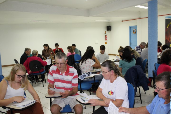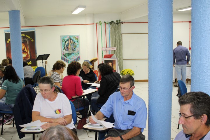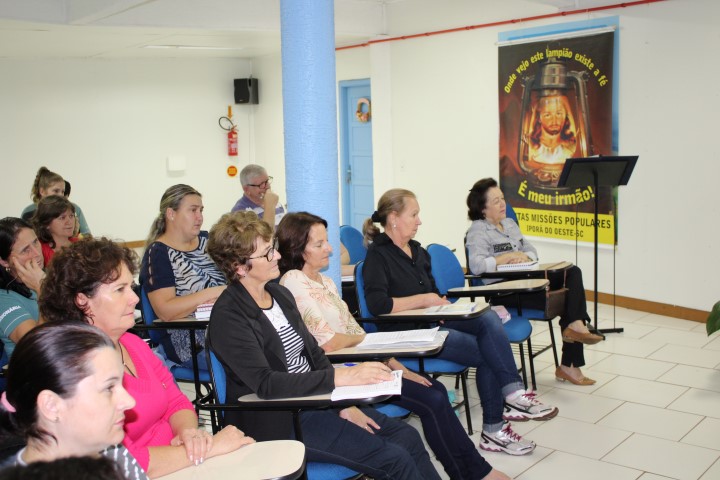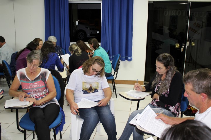 Aconteceu no dia 08 de maio no auditório paroquial o segundo encontro de formação dos missionários. O assessor do encontro foi o padre Francisco de São Miguel do Oeste que trabalhou o assunto da eclesiologia. As lideranças foram acolhidas com o canto: “levanta missionário” e em seguida aconteceu a oração que foi organizada pelo padre Osni e as demais lideranças. Logo em seguida o assessor tomou a palavra e discorreu o assunto sobre a Igreja. A formação concluiu com o agradecimento e a benção do padre Francisco.