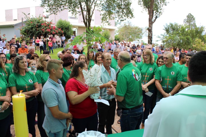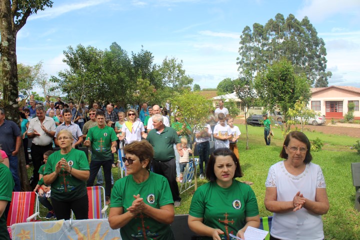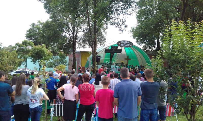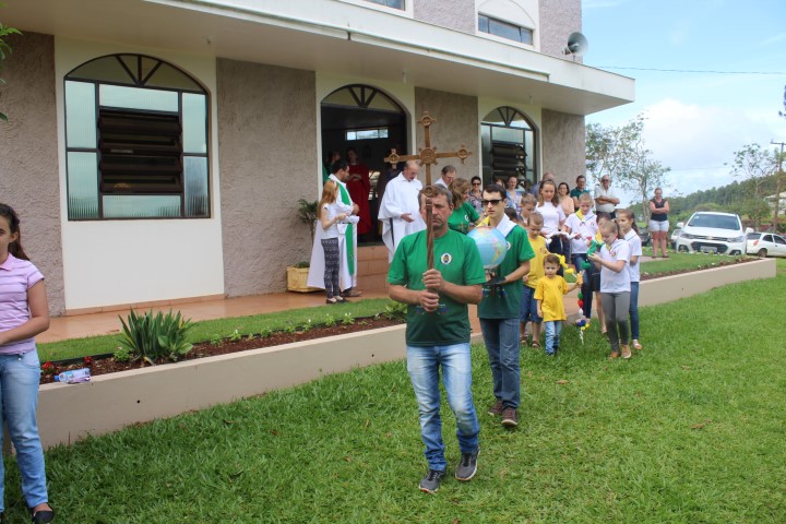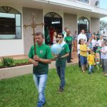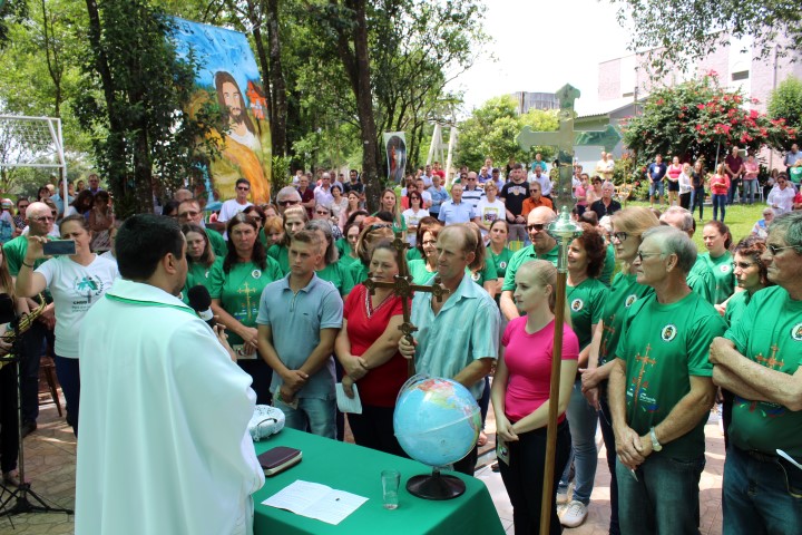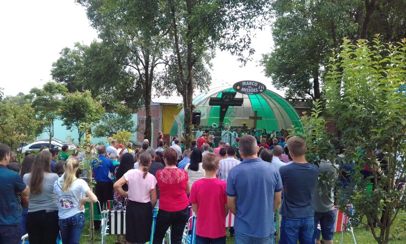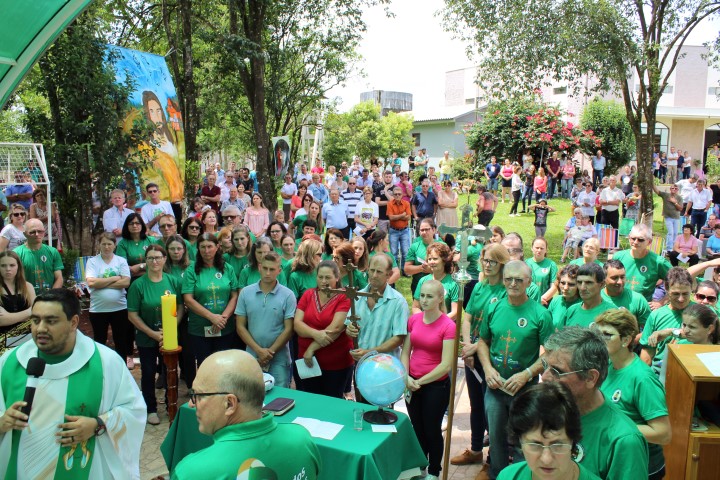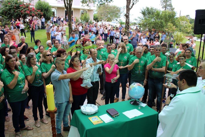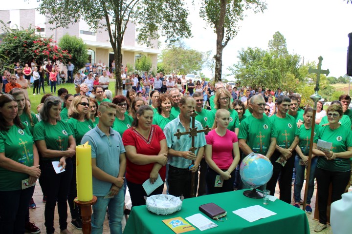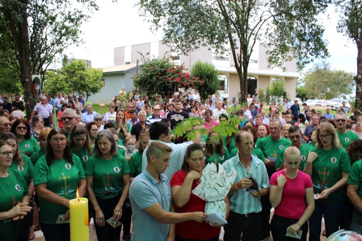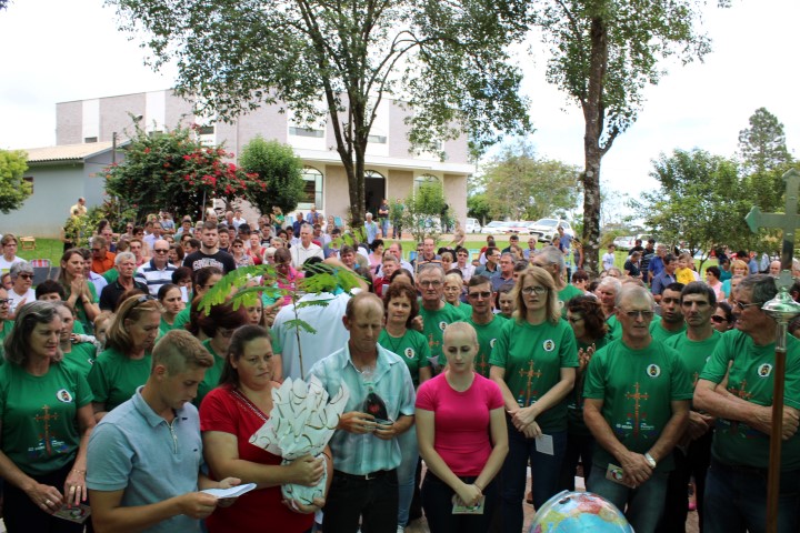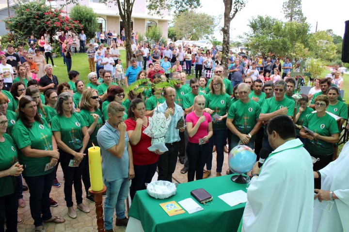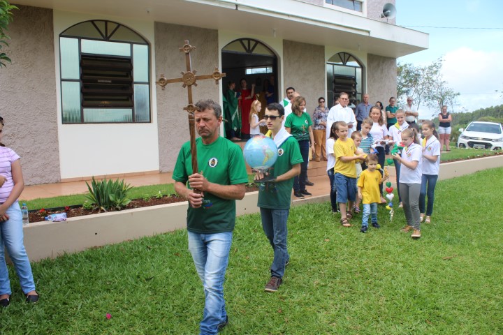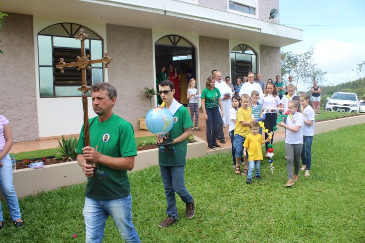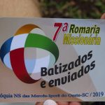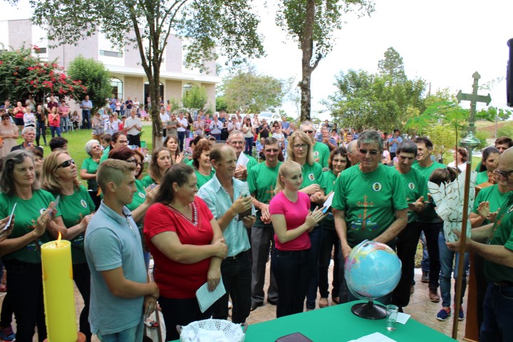 No domingo dia 10 de novembro realizamos a 7ª ROMARIA MISSIONÁRIA na comunidade de São Lourenço – Iporã do Oeste – SC, com o tema “BATIZADOS E ENVIADOS” – A Igreja de Cristo em Missão no mundo. A Fabiane Schneiders disse que: “A Romaria foi um momento muito abençoado, uma celebração linda de muita emoção. Todos nós Cristãos somos batizados e enviados em missão. Como disse Padre Osni, Deus ama quem vive os valore do Evangelho e da seu testemunho com alegria, pois nossa vida é um dom que recebemos de Deus. Todos juntos em missão, vivendo em comunhão, prontos para servir”. Quem sai em Missão enriquece aquele que encontra no caminho. Pois somos todos cooperadores da única missão de Deus que quer nos salvar, curar e libertar. Queremos e devemos Ser uma Igreja em Saída, em constante e permanente conversão missionária. A celebração contou com várias simbologias. Também tivemos a presença da família Dalla Nora de Vicente Dutra, que achou em sua propriedade a mensagem que soltamos junto com os balões na Romaria das Capelinhas em 2017. Foi um dia lindo, com a presença dos romeiros e missionários, UM DIA DE MUITAS GRAÇAS E BÊNÇÃOS.