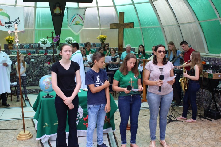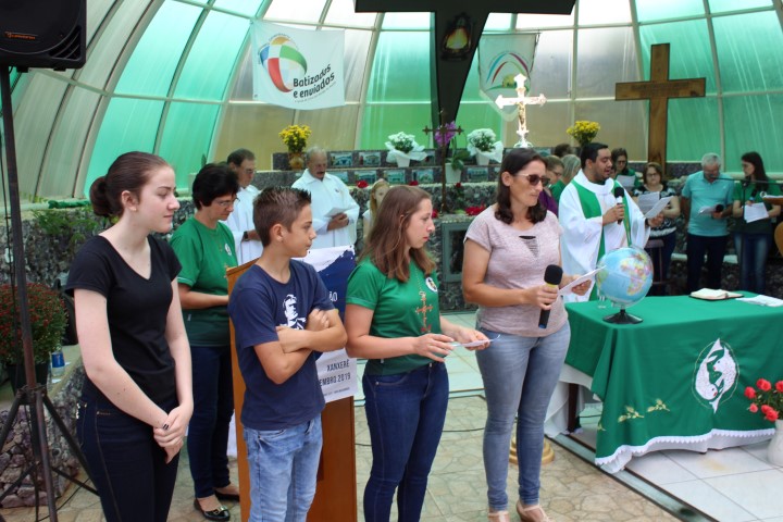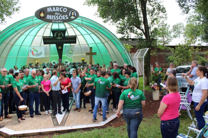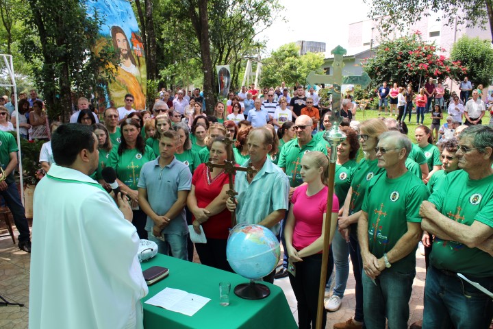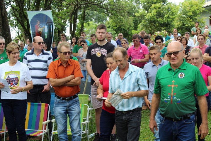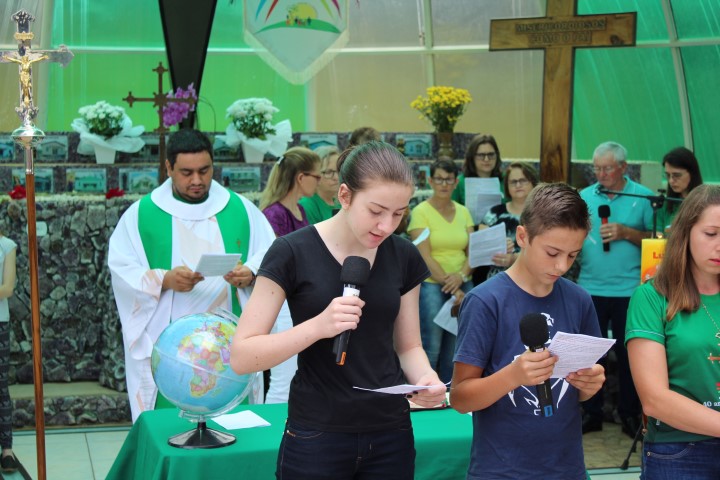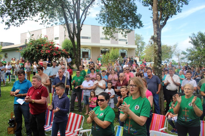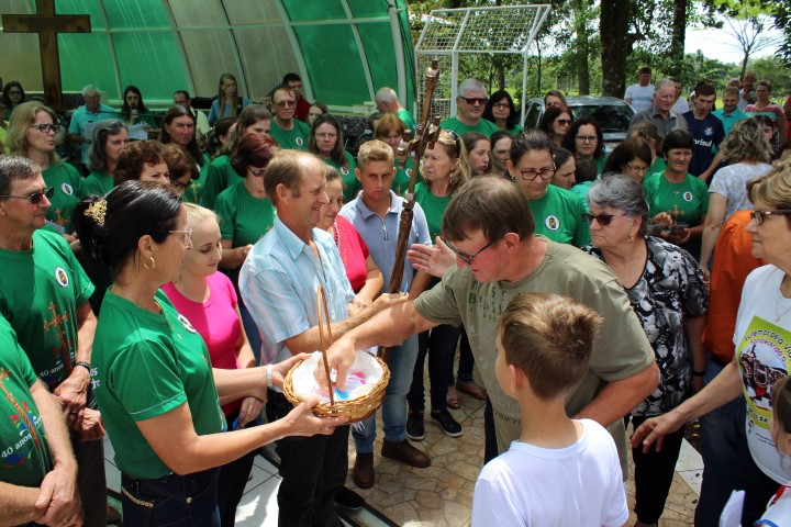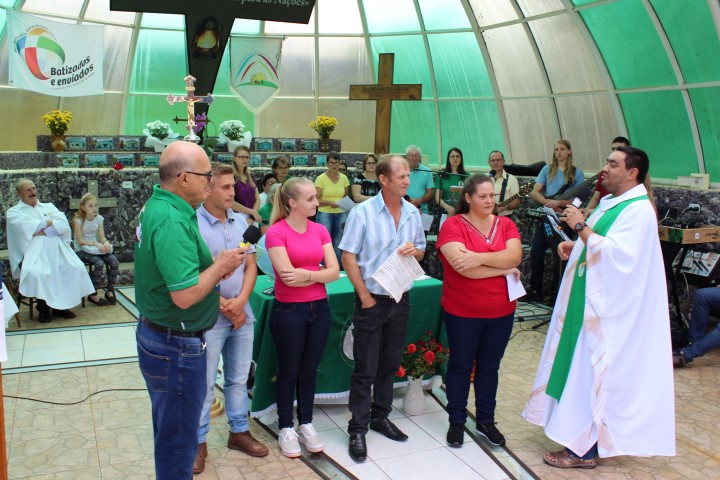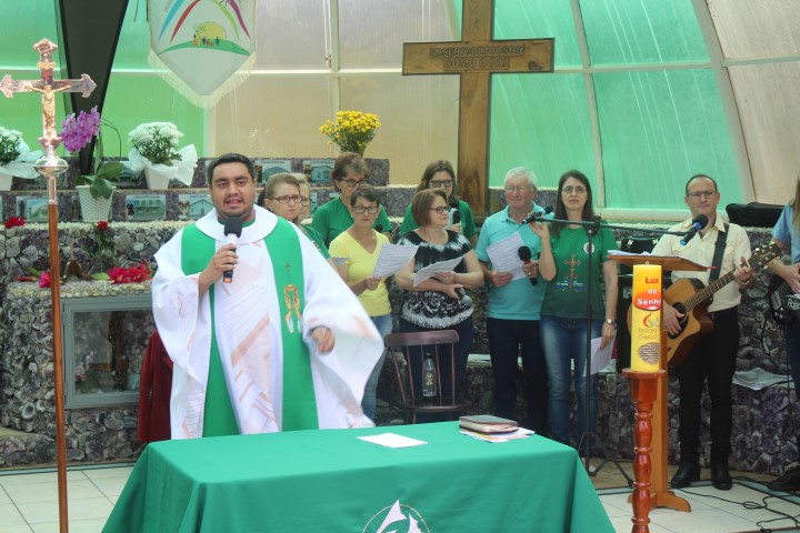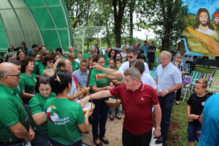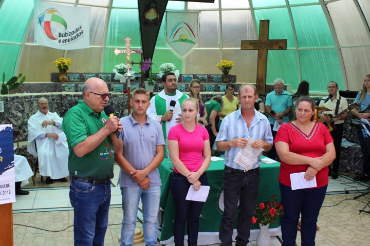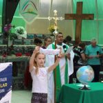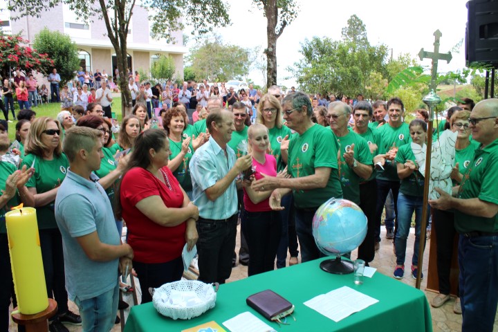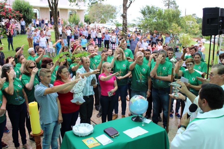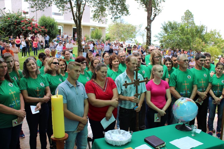 No domingo dia 10 de novembro realizamos a 7ª ROMARIA MISSIONÁRIA na comunidade de São Lourenço – Iporã do Oeste – SC, com o tema “BATIZADOS E ENVIADOS” – A Igreja de Cristo em Missão no mundo. A Fabiane Schneiders disse que: “A Romaria foi um momento muito abençoado, uma celebração linda de muita emoção. Todos nós Cristãos somos batizados e enviados em missão. Como disse Padre Osni, Deus ama quem vive os valore do Evangelho e da seu testemunho com alegria, pois nossa vida é um dom que recebemos de Deus. Todos juntos em missão, vivendo em comunhão, prontos para servir”. Quem sai em Missão enriquece aquele que encontra no caminho. Pois somos todos cooperadores da única missão de Deus que quer nos salvar, curar e libertar. Queremos e devemos Ser uma Igreja em Saída, em constante e permanente conversão missionária. A celebração contou com várias simbologias. Também tivemos a presença da família Dalla Nora de Vicente Dutra, que achou em sua propriedade a mensagem que soltamos junto com os balões na Romaria das Capelinhas em 2017. Foi um dia lindo, com a presença dos romeiros e missionários, UM DIA DE MUITAS GRAÇAS E BÊNÇÃOS.