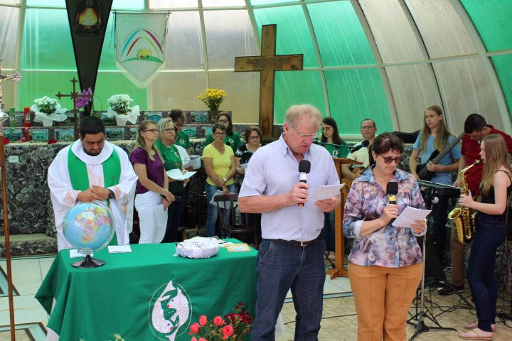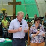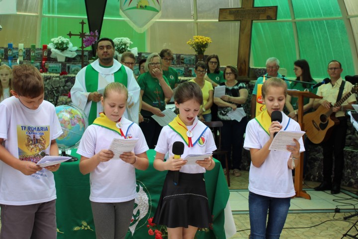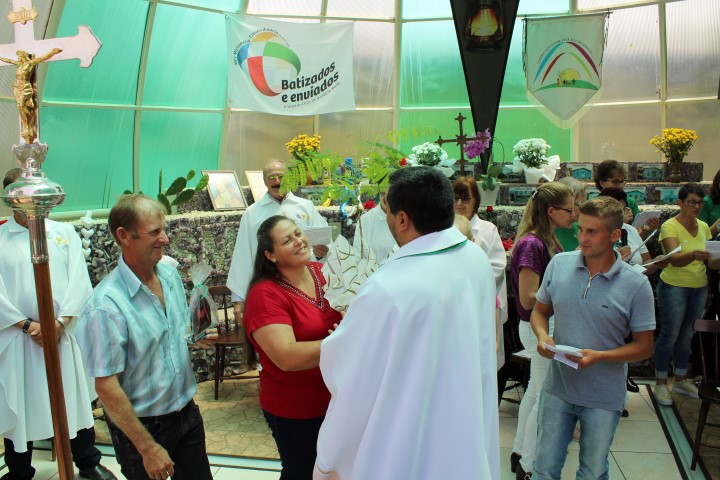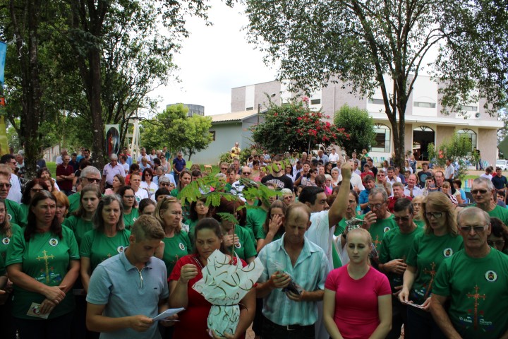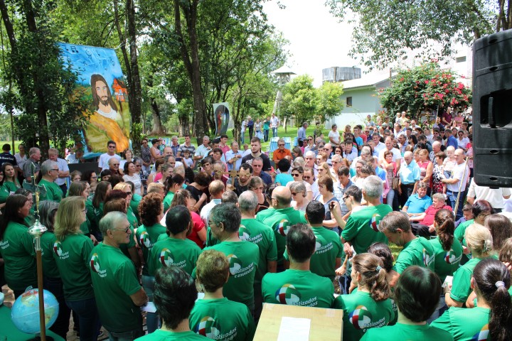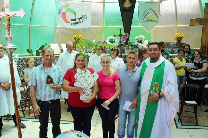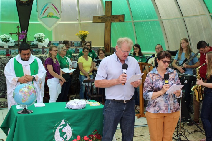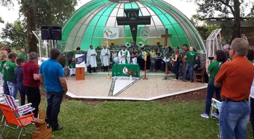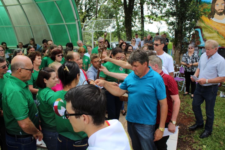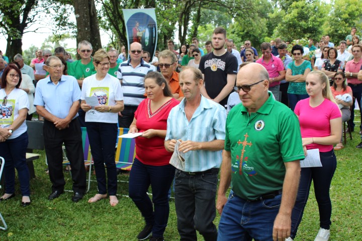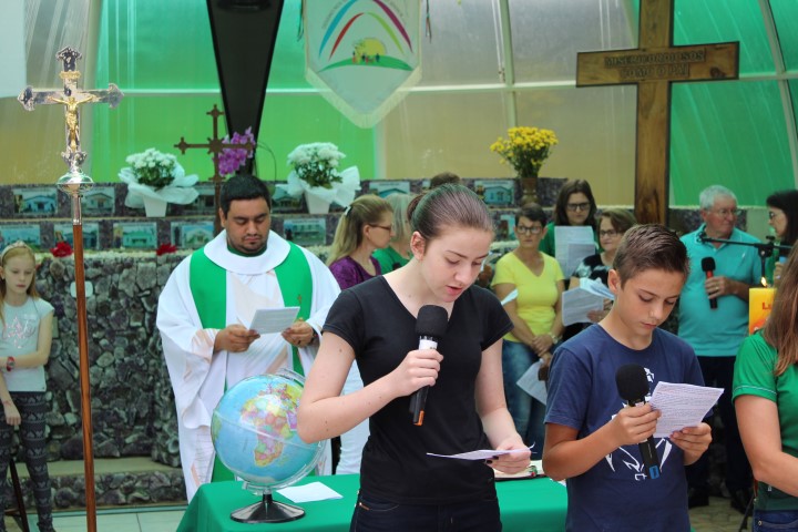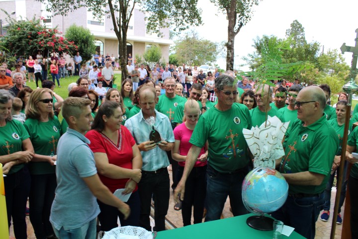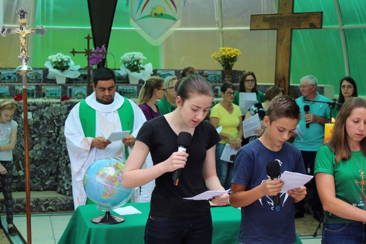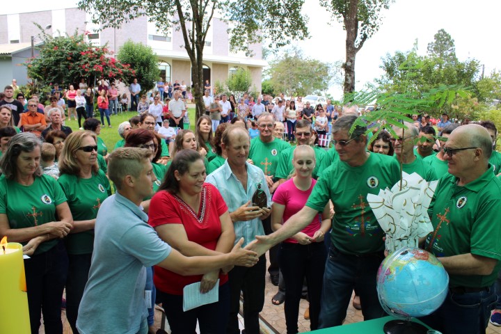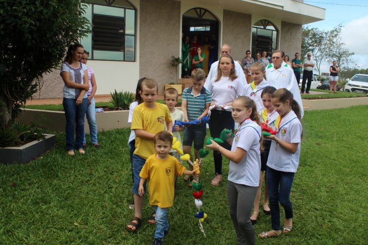 No domingo dia 10 de novembro realizamos a 7ª ROMARIA MISSIONÁRIA na comunidade de São Lourenço – Iporã do Oeste – SC, com o tema “BATIZADOS E ENVIADOS” – A Igreja de Cristo em Missão no mundo. A Fabiane Schneiders disse que: “A Romaria foi um momento muito abençoado, uma celebração linda de muita emoção. Todos nós Cristãos somos batizados e enviados em missão. Como disse Padre Osni, Deus ama quem vive os valore do Evangelho e da seu testemunho com alegria, pois nossa vida é um dom que recebemos de Deus. Todos juntos em missão, vivendo em comunhão, prontos para servir”. Quem sai em Missão enriquece aquele que encontra no caminho. Pois somos todos cooperadores da única missão de Deus que quer nos salvar, curar e libertar. Queremos e devemos Ser uma Igreja em Saída, em constante e permanente conversão missionária. A celebração contou com várias simbologias. Também tivemos a presença da família Dalla Nora de Vicente Dutra, que achou em sua propriedade a mensagem que soltamos junto com os balões na Romaria das Capelinhas em 2017. Foi um dia lindo, com a presença dos romeiros e missionários, UM DIA DE MUITAS GRAÇAS E BÊNÇÃOS.