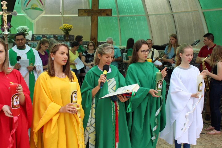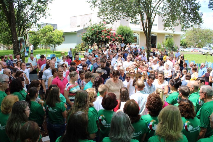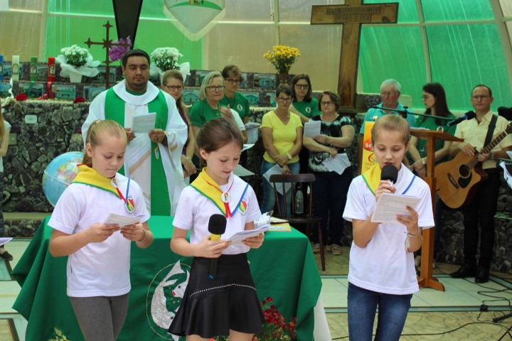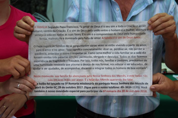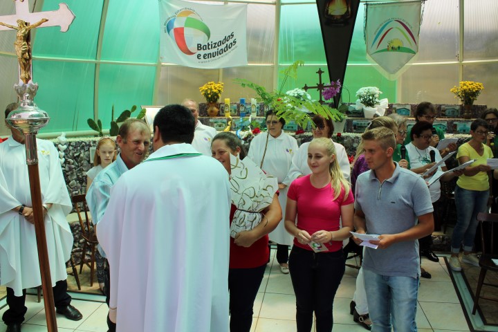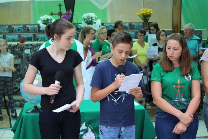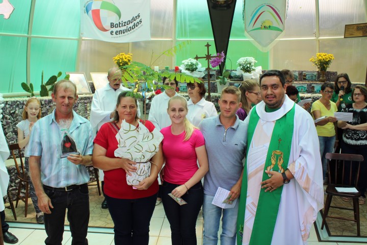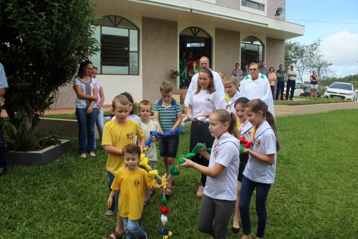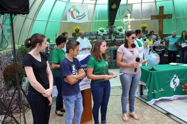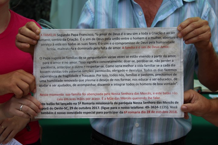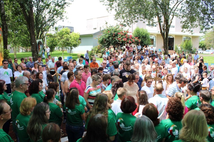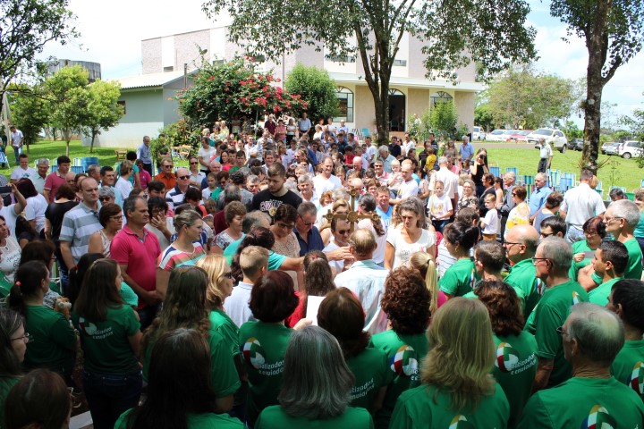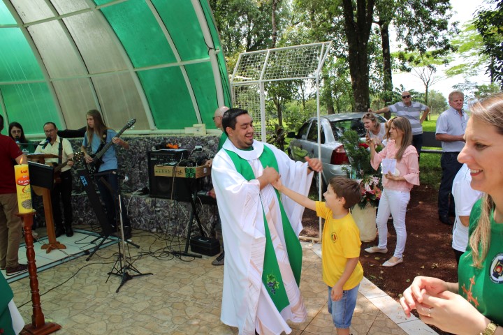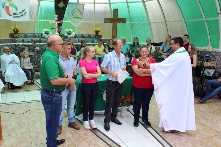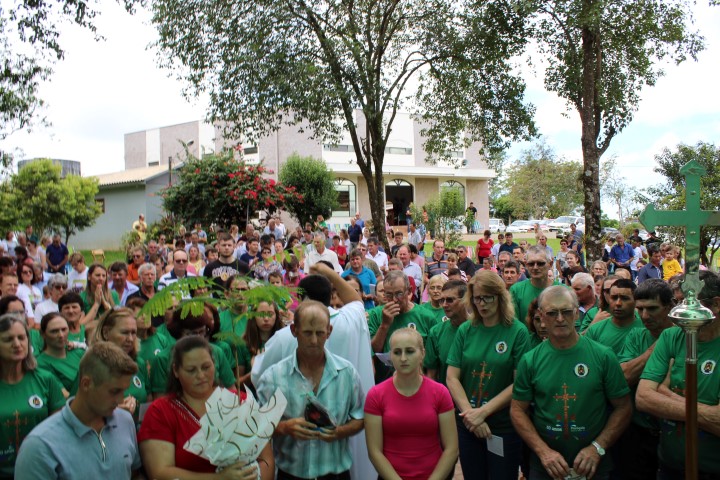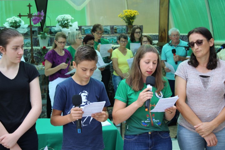 No domingo dia 10 de novembro realizamos a 7ª ROMARIA MISSIONÁRIA na comunidade de São Lourenço – Iporã do Oeste – SC, com o tema “BATIZADOS E ENVIADOS” – A Igreja de Cristo em Missão no mundo. A Fabiane Schneiders disse que: “A Romaria foi um momento muito abençoado, uma celebração linda de muita emoção. Todos nós Cristãos somos batizados e enviados em missão. Como disse Padre Osni, Deus ama quem vive os valore do Evangelho e da seu testemunho com alegria, pois nossa vida é um dom que recebemos de Deus. Todos juntos em missão, vivendo em comunhão, prontos para servir”. Quem sai em Missão enriquece aquele que encontra no caminho. Pois somos todos cooperadores da única missão de Deus que quer nos salvar, curar e libertar. Queremos e devemos Ser uma Igreja em Saída, em constante e permanente conversão missionária. A celebração contou com várias simbologias. Também tivemos a presença da família Dalla Nora de Vicente Dutra, que achou em sua propriedade a mensagem que soltamos junto com os balões na Romaria das Capelinhas em 2017. Foi um dia lindo, com a presença dos romeiros e missionários, UM DIA DE MUITAS GRAÇAS E BÊNÇÃOS.