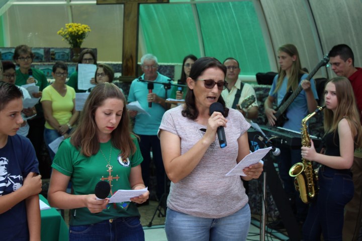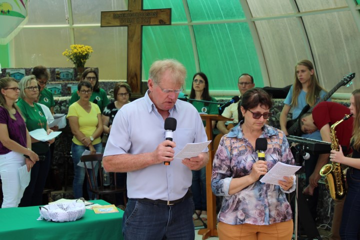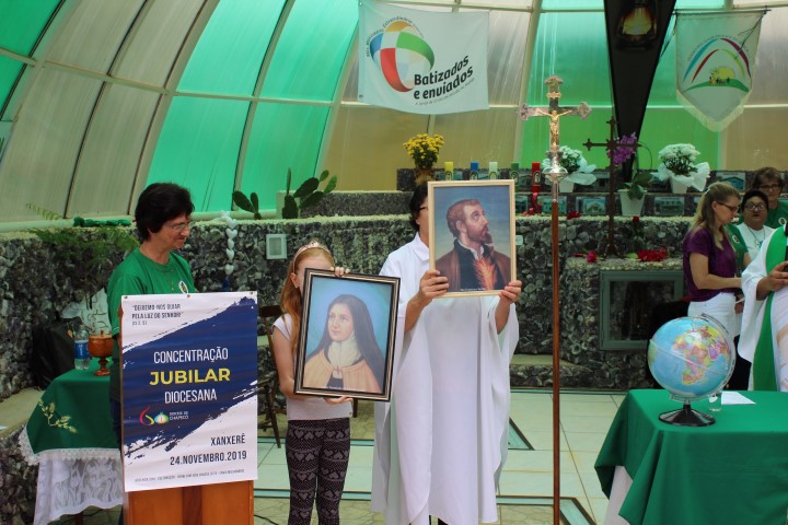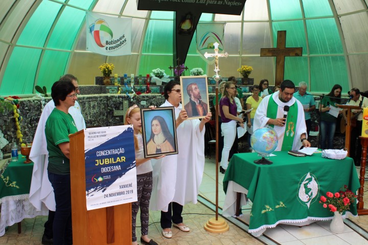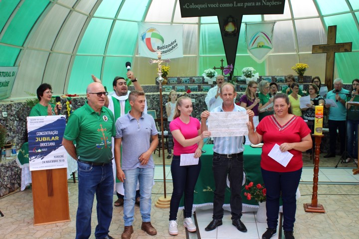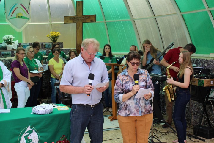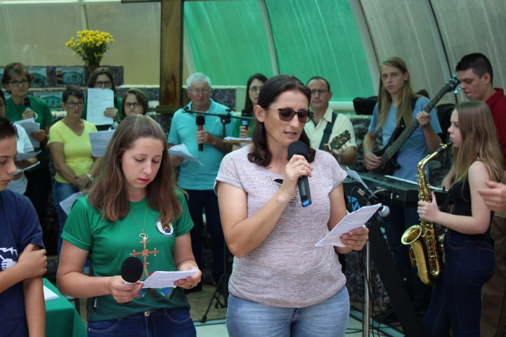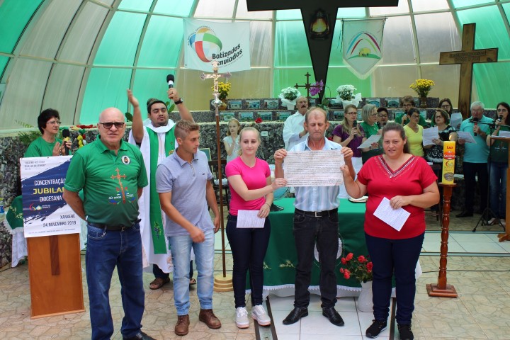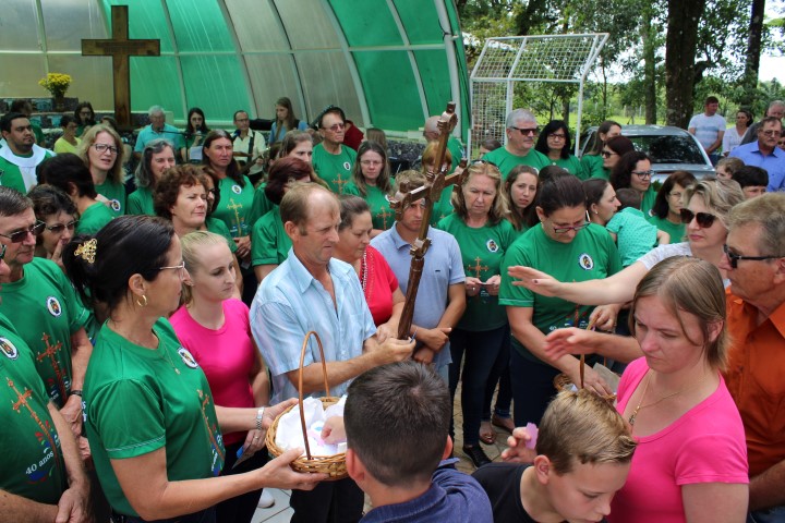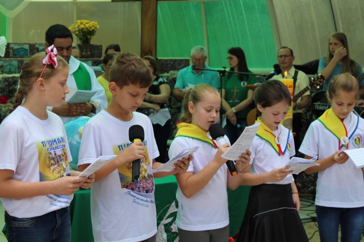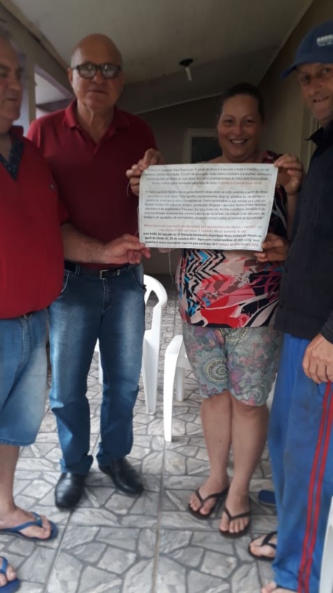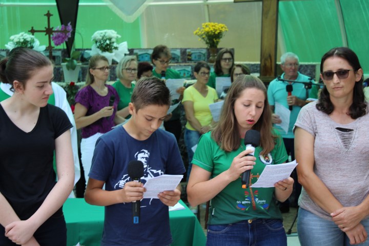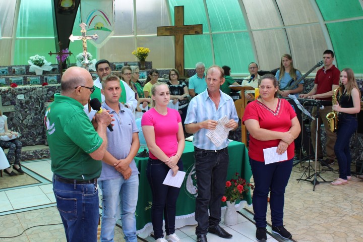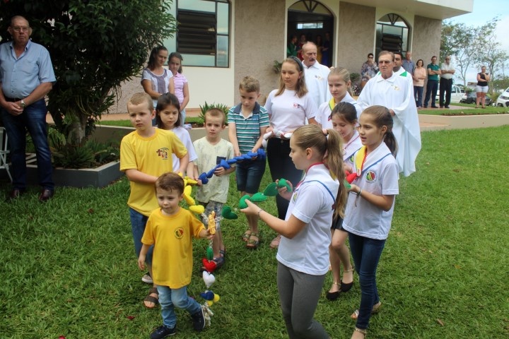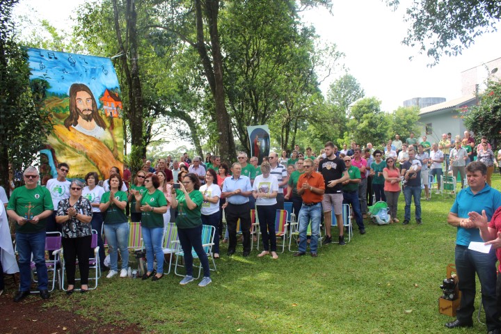 No domingo dia 10 de novembro realizamos a 7ª ROMARIA MISSIONÁRIA na comunidade de São Lourenço – Iporã do Oeste – SC, com o tema “BATIZADOS E ENVIADOS” – A Igreja de Cristo em Missão no mundo. A Fabiane Schneiders disse que: “A Romaria foi um momento muito abençoado, uma celebração linda de muita emoção. Todos nós Cristãos somos batizados e enviados em missão. Como disse Padre Osni, Deus ama quem vive os valore do Evangelho e da seu testemunho com alegria, pois nossa vida é um dom que recebemos de Deus. Todos juntos em missão, vivendo em comunhão, prontos para servir”. Quem sai em Missão enriquece aquele que encontra no caminho. Pois somos todos cooperadores da única missão de Deus que quer nos salvar, curar e libertar. Queremos e devemos Ser uma Igreja em Saída, em constante e permanente conversão missionária. A celebração contou com várias simbologias. Também tivemos a presença da família Dalla Nora de Vicente Dutra, que achou em sua propriedade a mensagem que soltamos junto com os balões na Romaria das Capelinhas em 2017. Foi um dia lindo, com a presença dos romeiros e missionários, UM DIA DE MUITAS GRAÇAS E BÊNÇÃOS.