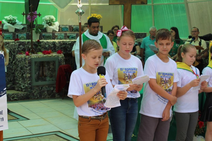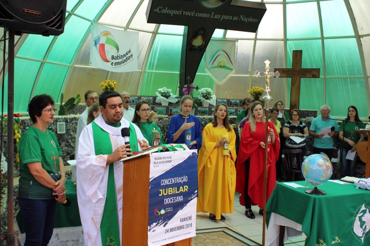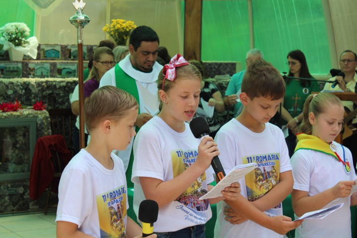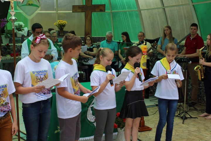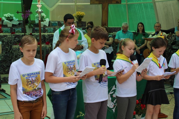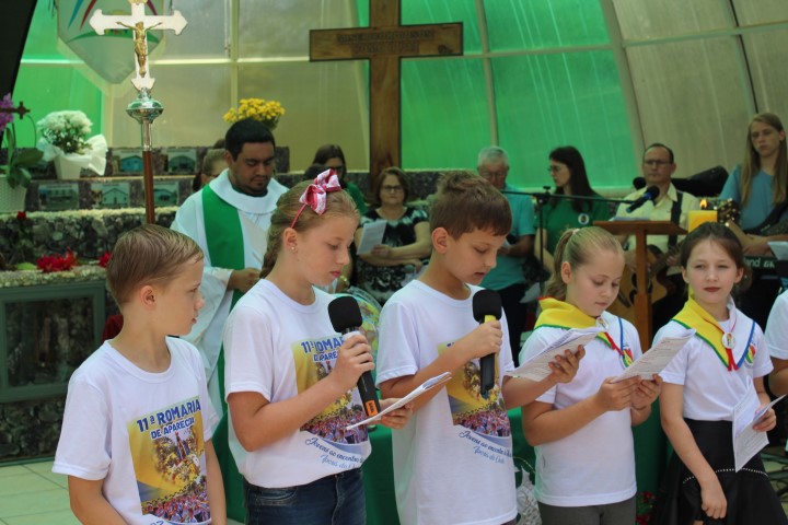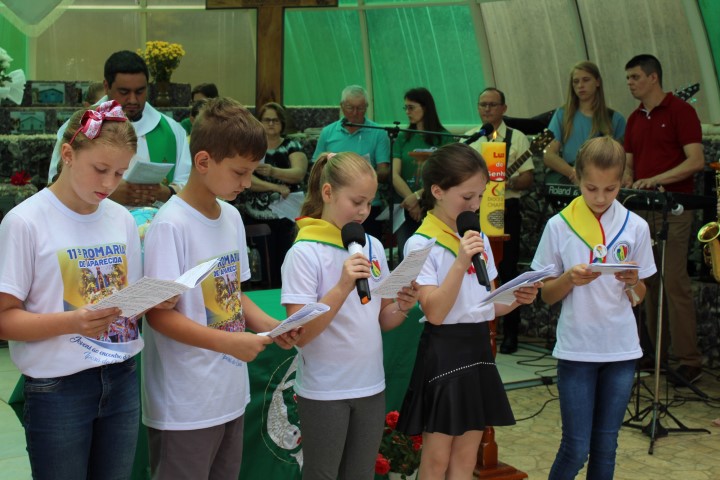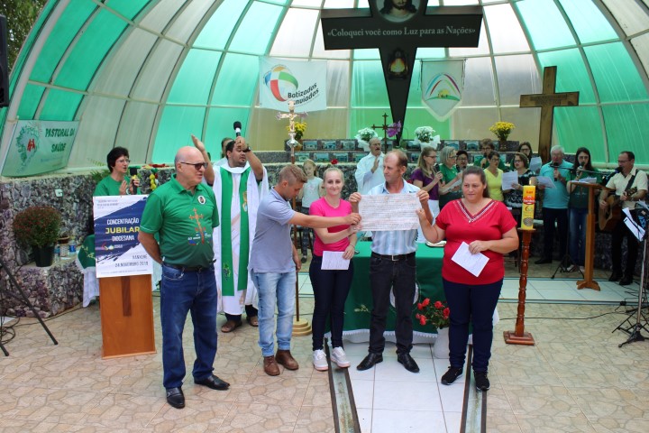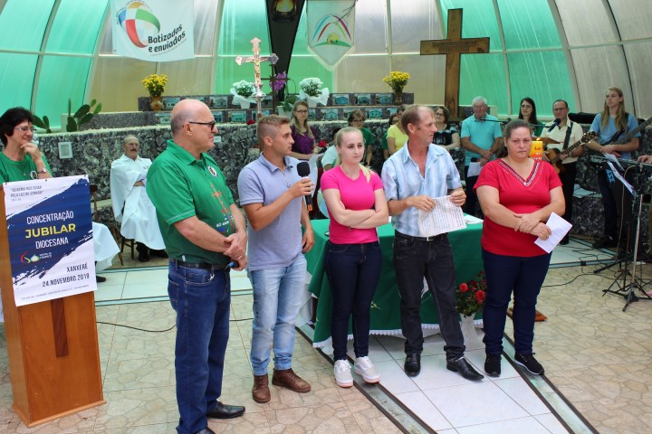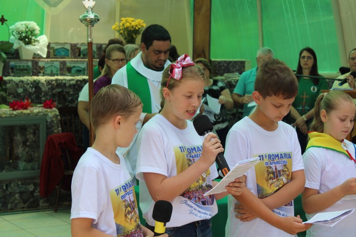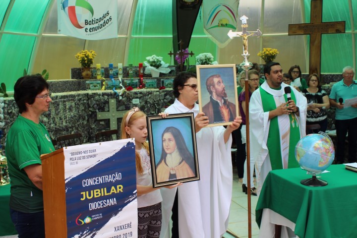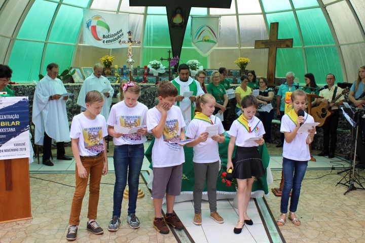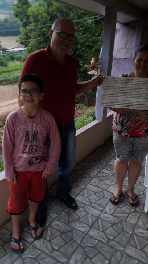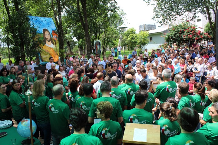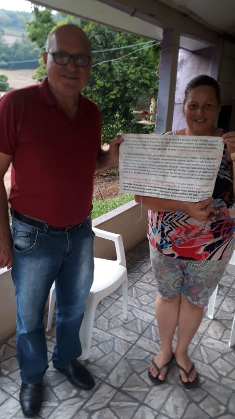 No domingo dia 10 de novembro realizamos a 7ª ROMARIA MISSIONÁRIA na comunidade de São Lourenço – Iporã do Oeste – SC, com o tema “BATIZADOS E ENVIADOS” – A Igreja de Cristo em Missão no mundo. A Fabiane Schneiders disse que: “A Romaria foi um momento muito abençoado, uma celebração linda de muita emoção. Todos nós Cristãos somos batizados e enviados em missão. Como disse Padre Osni, Deus ama quem vive os valore do Evangelho e da seu testemunho com alegria, pois nossa vida é um dom que recebemos de Deus. Todos juntos em missão, vivendo em comunhão, prontos para servir”. Quem sai em Missão enriquece aquele que encontra no caminho. Pois somos todos cooperadores da única missão de Deus que quer nos salvar, curar e libertar. Queremos e devemos Ser uma Igreja em Saída, em constante e permanente conversão missionária. A celebração contou com várias simbologias. Também tivemos a presença da família Dalla Nora de Vicente Dutra, que achou em sua propriedade a mensagem que soltamos junto com os balões na Romaria das Capelinhas em 2017. Foi um dia lindo, com a presença dos romeiros e missionários, UM DIA DE MUITAS GRAÇAS E BÊNÇÃOS.