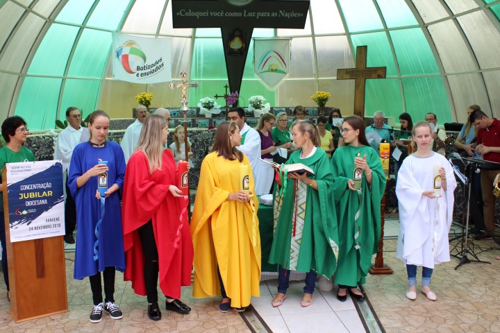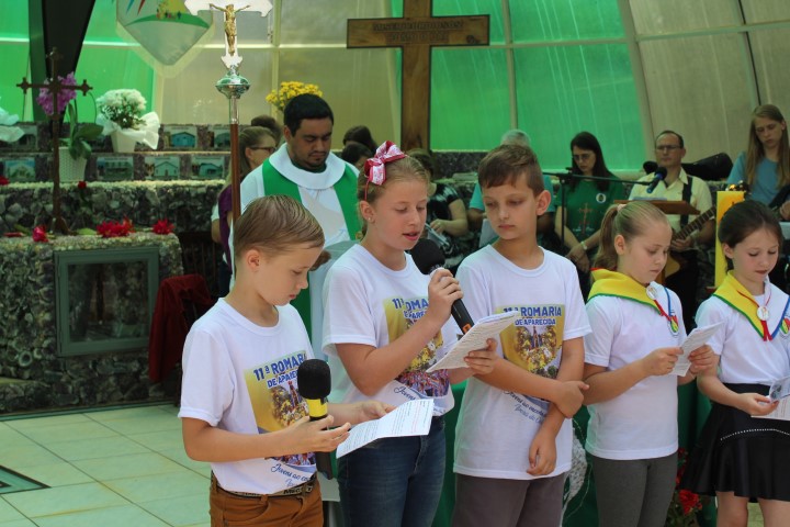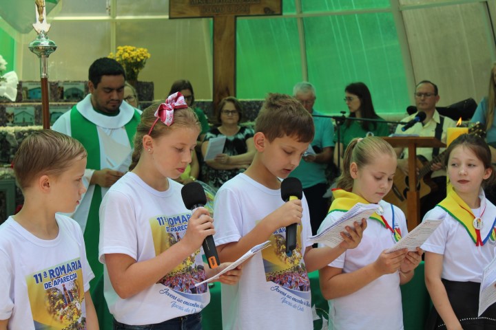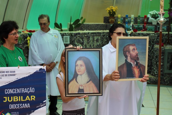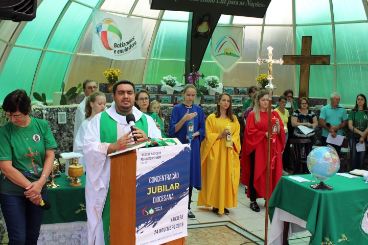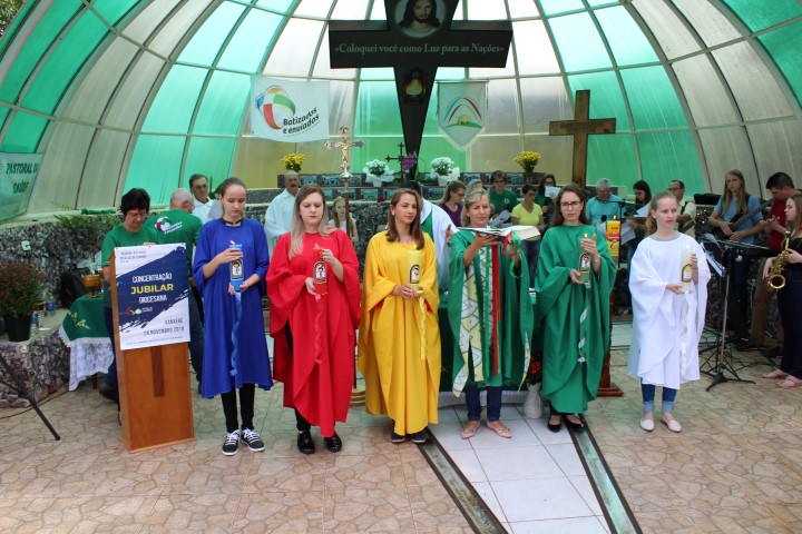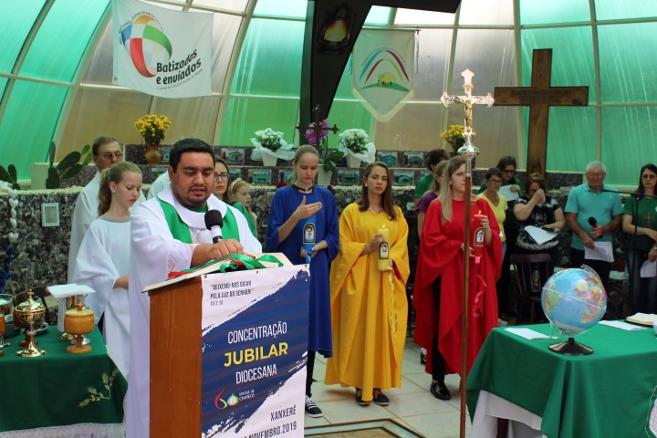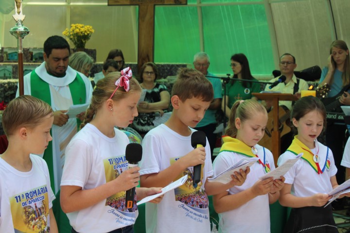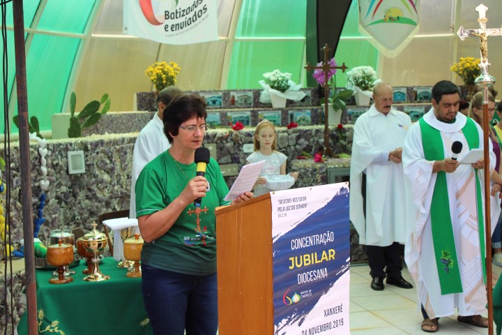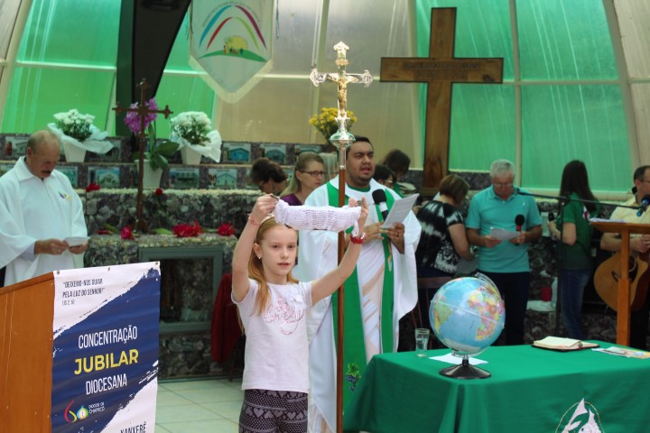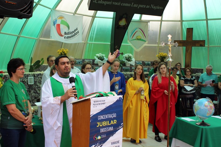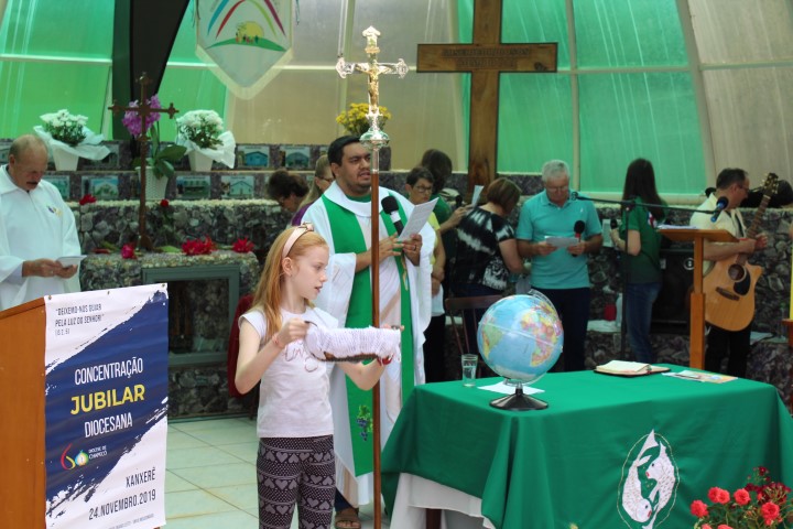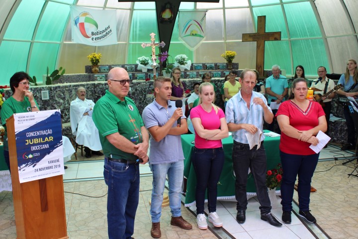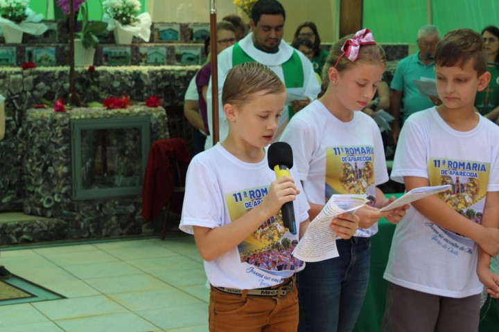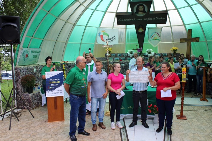 No domingo dia 10 de novembro realizamos a 7ª ROMARIA MISSIONÁRIA na comunidade de São Lourenço – Iporã do Oeste – SC, com o tema “BATIZADOS E ENVIADOS” – A Igreja de Cristo em Missão no mundo. A Fabiane Schneiders disse que: “A Romaria foi um momento muito abençoado, uma celebração linda de muita emoção. Todos nós Cristãos somos batizados e enviados em missão. Como disse Padre Osni, Deus ama quem vive os valore do Evangelho e da seu testemunho com alegria, pois nossa vida é um dom que recebemos de Deus. Todos juntos em missão, vivendo em comunhão, prontos para servir”. Quem sai em Missão enriquece aquele que encontra no caminho. Pois somos todos cooperadores da única missão de Deus que quer nos salvar, curar e libertar. Queremos e devemos Ser uma Igreja em Saída, em constante e permanente conversão missionária. A celebração contou com várias simbologias. Também tivemos a presença da família Dalla Nora de Vicente Dutra, que achou em sua propriedade a mensagem que soltamos junto com os balões na Romaria das Capelinhas em 2017. Foi um dia lindo, com a presença dos romeiros e missionários, UM DIA DE MUITAS GRAÇAS E BÊNÇÃOS.