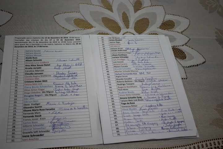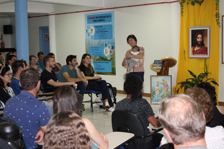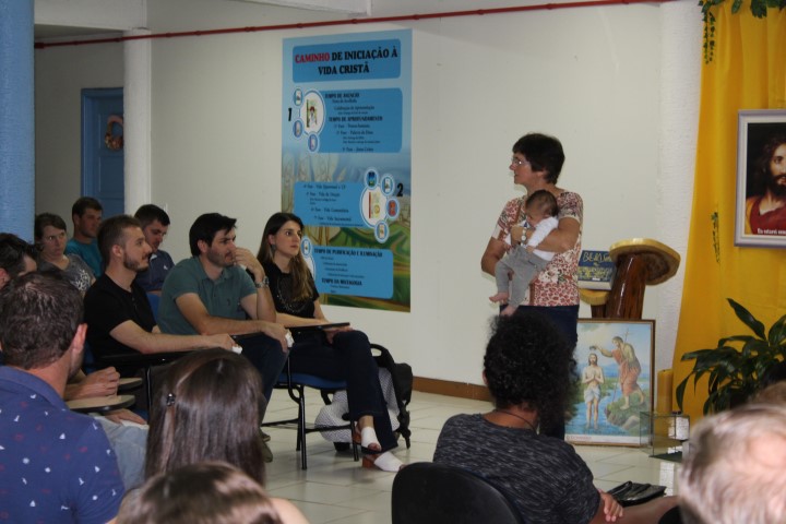 Aconteceu no dia 12 de dezembro a última preparação para pais e padrinhos do ano de 2019. Estiveram presentes 61 pessoas. A Beatriz conduziu a preparação com muita clareza e facilidade se fazendo entender o que normalmente é o Sacramento do Batismo bem como é: o Sacramento da Iniciação a Vida Cristã, onde devemos viver este Sacramento durante nossa vida. Batismo é purificação, libertação do pecado, pois ser batizado é dar testemunho, vivendo o Evangelho. Batismo é o nascimento para uma vida nova.