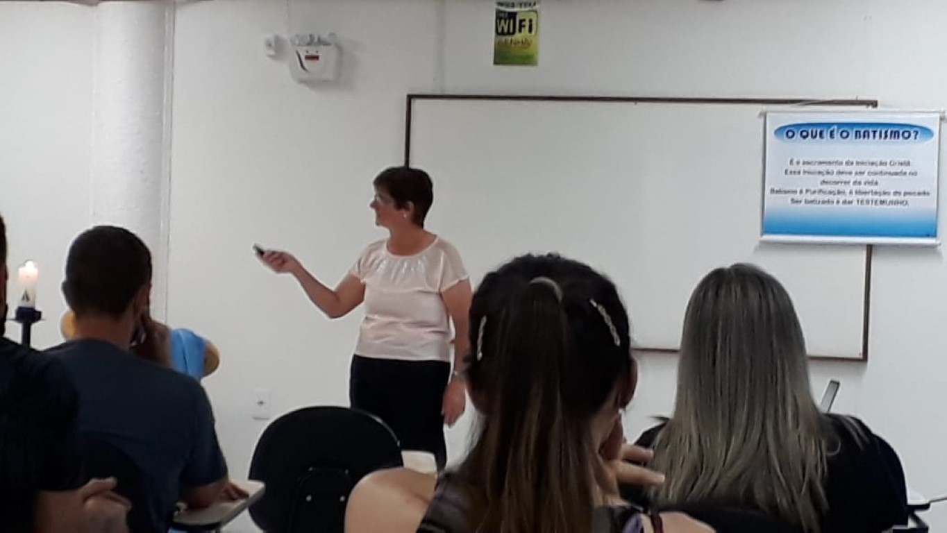 No último dia 10 de dezembro foi realizado no auditório Paulo Apóstolo mais uma PREPARAÇÃO para o Batismo, com pais e padrinhos, onde estavam presentes cerca de 58 pessoas. O encontro foi assessorado pela ministra Beatriz Schwengber e demais voluntárias da Pastoral do Batismo da paróquia.