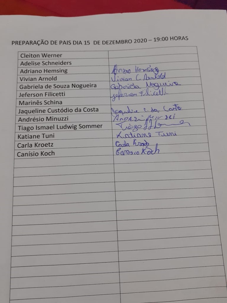 Para terminar o ano atípico de 2020, tivemos a última Preparação de Batismo para os pais. Padre Osni, falou sobre a valorização dos Sacramentos, principalmente o Batismo onde estes buscam para seus filhos, sobre a importância da participação em comunidade que devemos ser “Cristóforo” – portadores de Jesus Cristo.