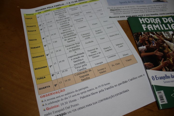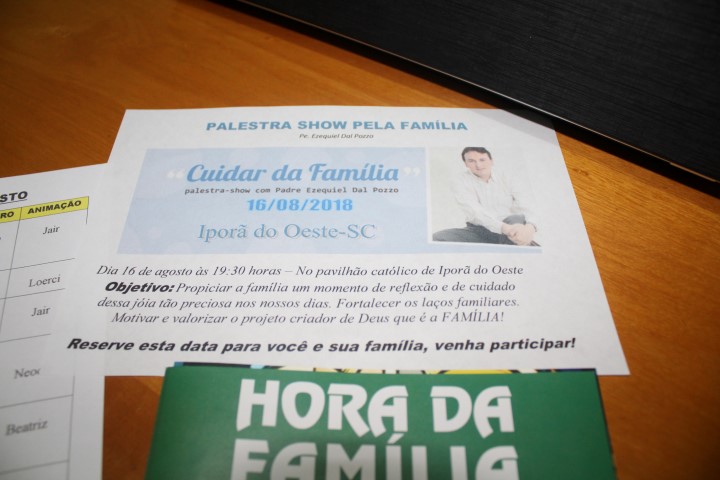 Aconteceu, hoje dia 11, no auditório da paróquia às 19:30 horas o encontro de preparação para a Semana da Família Paroquial em Iporã do Oeste. Iniciamos com a oração e em seguida apresentamos paras as equipes a programação da novena pela família. O objetivo é de realizarmos nove dias de oração e celebração em prol das famílias, isto é, cuidar dessa jóia preciosa que temos. Do dia 07 de agosto a 15 de agosto iremos fazer esse caminho de oração; a cada noite terá uma equipe de que irá organizar esses momentos; são lideranças da comunidade da matriz que foram envolvidas; são convidados todos os casais – famílias para participar dessa novena; sendo que no dia 15 de agosto teremos a Santa Missa pela família e no dia de 16 de agosto a palestra-show com padre Ezequiel Dal Pozzo no pavilhão católico da comunidade da matriz. O convite para participar desse caminho de oração, de celebração, de louvor pela família é direcionado para as crianças, os adolescentes, os jovens, os casais, os idosos, as demais igrejas para que possamos fazer uma grande corrente de oração de cuidado pelas nossas famílias. Reserve esta data para você e sua família, e venha participar.