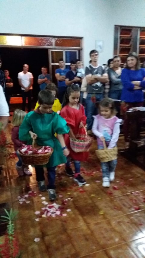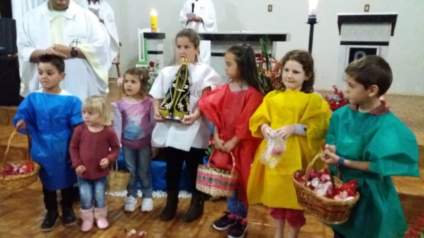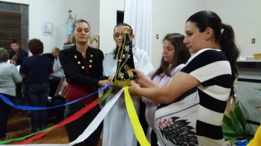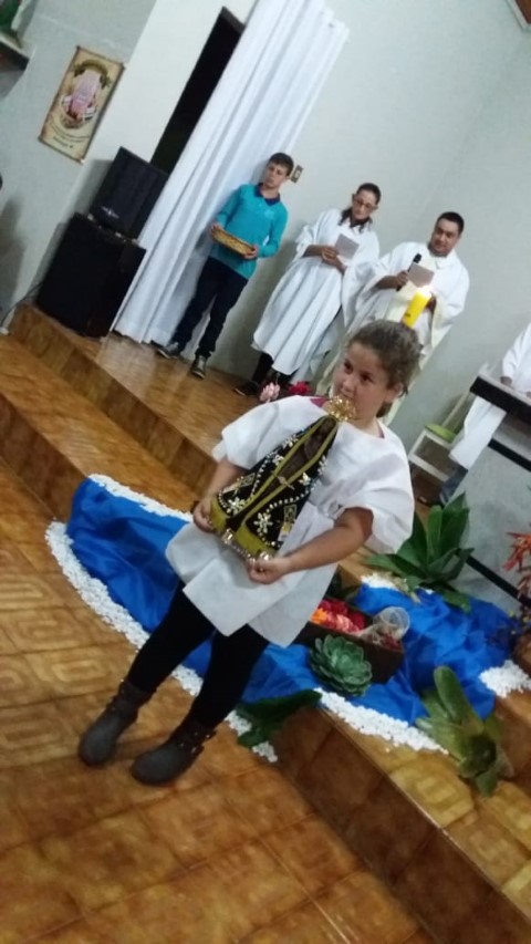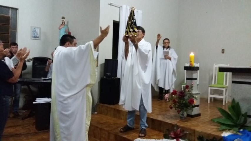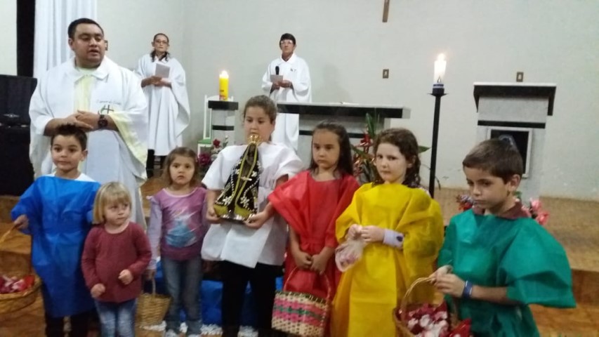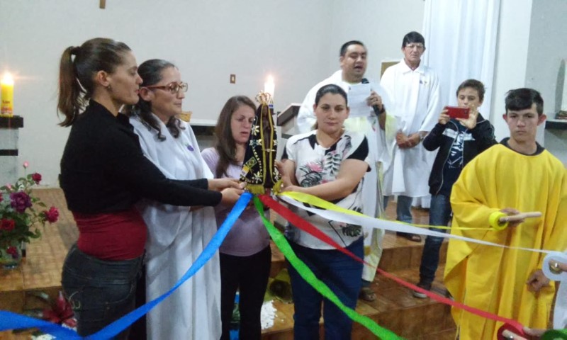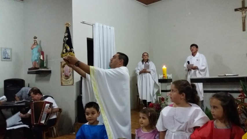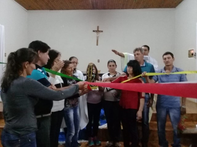 Hoje dia 23 de outubro aconteceu na comunidade de União da Serra a celebração da vinda da réplica de Nossa Senhora Aparecida. Participaram desta celebração as comunidades de: Vitória, Esperança, Barra Grande, Pirajú, Preferido Alto e Pavão. Elas receberam a imagem da Mãe Aparecida. Estavam presente algumas famílias da comunidade de São Vendelino e da Matriz. A equipe de canto da comunidade da matriz animou a celebração. A ministra Simone deixa seu depoimento: “Foi uma noite maravilhosa de muitas bênçãos, proteção, nós sentimos agradecidos pela participação de todos. Uma missa muito bonita; palavras de esperança, amor, carinho para refletir junto com nossa mãe. Estar de bem com as pessoas, viver a vida, estar de bem com todos. Um momento de benção e graça. Obrigado Mãe Aparecida pelos ensinamentos de vida”. As comunidades e liderança viveram mais um momento de graça e benção. Após a celebração houve a partilha de alimentos trazidas pelas famílias.
